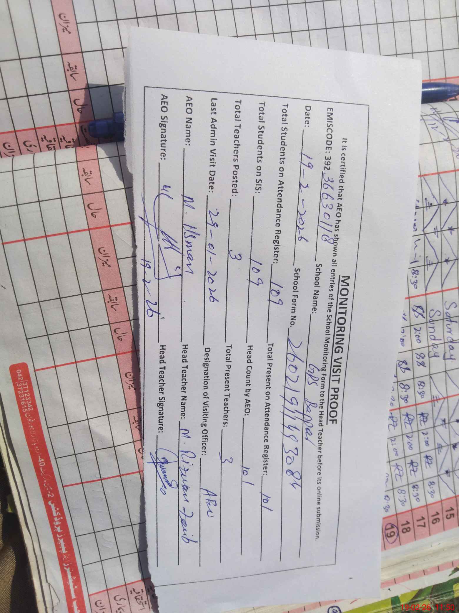 | EMIS Code: 36630118 | Name of School: GPS BAPPAR | |||