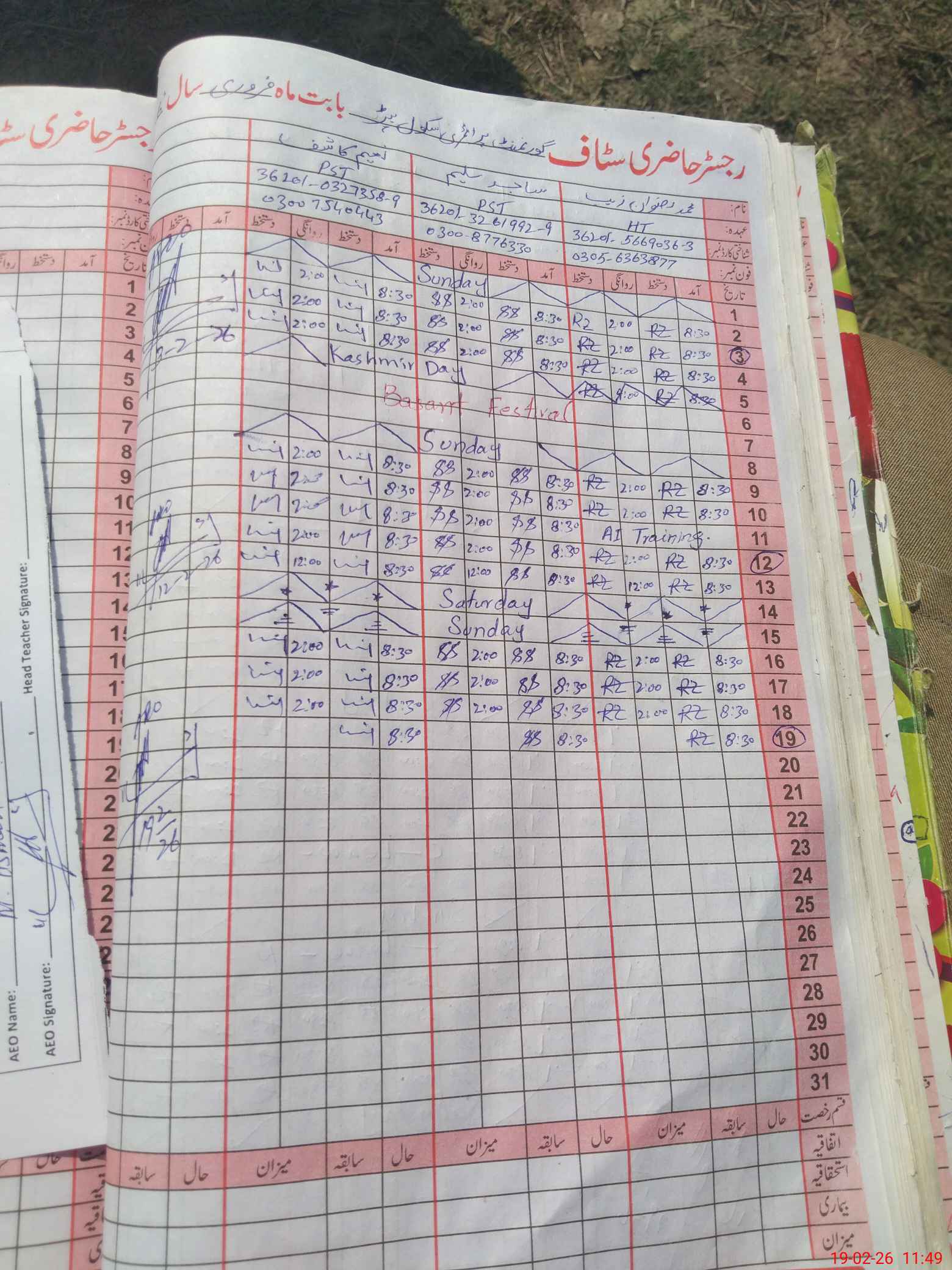 | Name: MU**** Ri**** Za**** Designation: (School Headmaster's/Headmistress's) ESE (SC,MATH) Phone/Cell Number: 03**** |