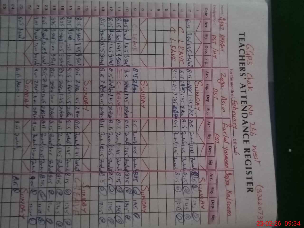 | Name: IJ**** AK**** Designation: (School Headmaster's/Headmistress's) PST Phone/Cell Number: 03**** |
