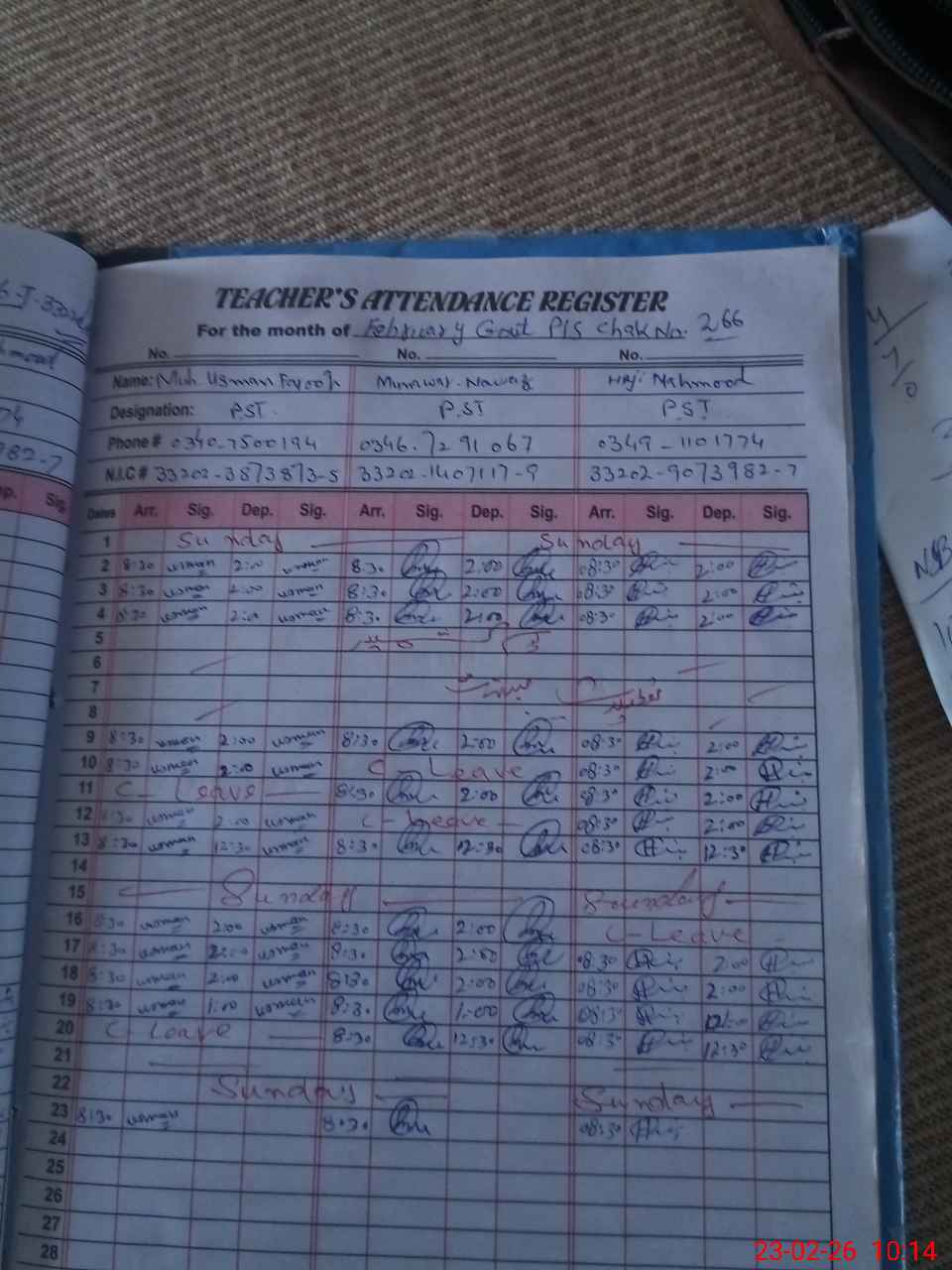 | Name: MUs**** Fa**** Designation: (School Headmaster's/Headmistress's) PST Phone/Cell Number: 03**** |