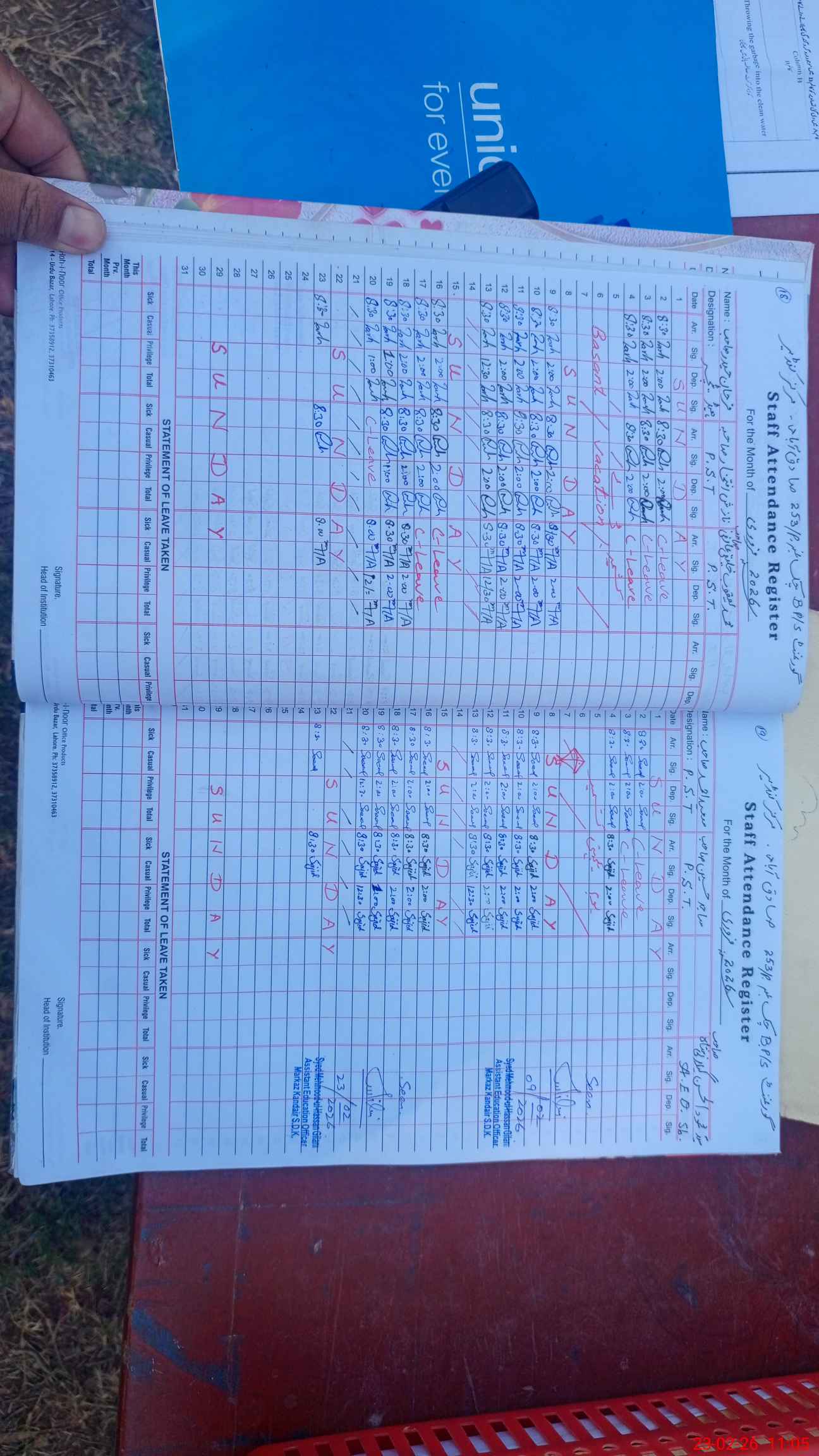 | Name: Fa**** Ha**** Designation: (School Headmaster's/Headmistress's) PST Phone/Cell Number: 03**** |