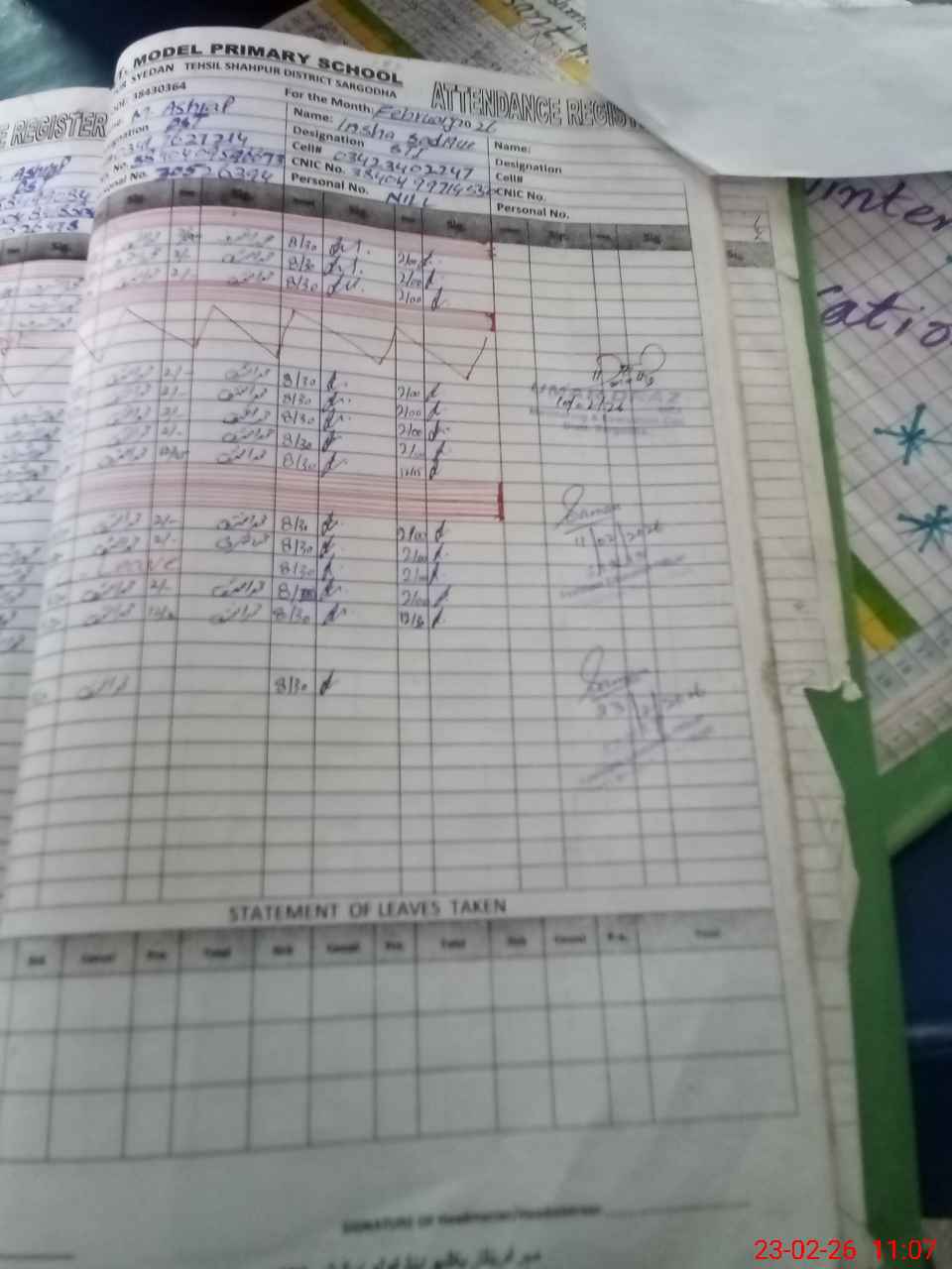 | Name: SA**** NA**** Designation: (School Headmaster's/Headmistress's) PST Phone/Cell Number: 03**** |