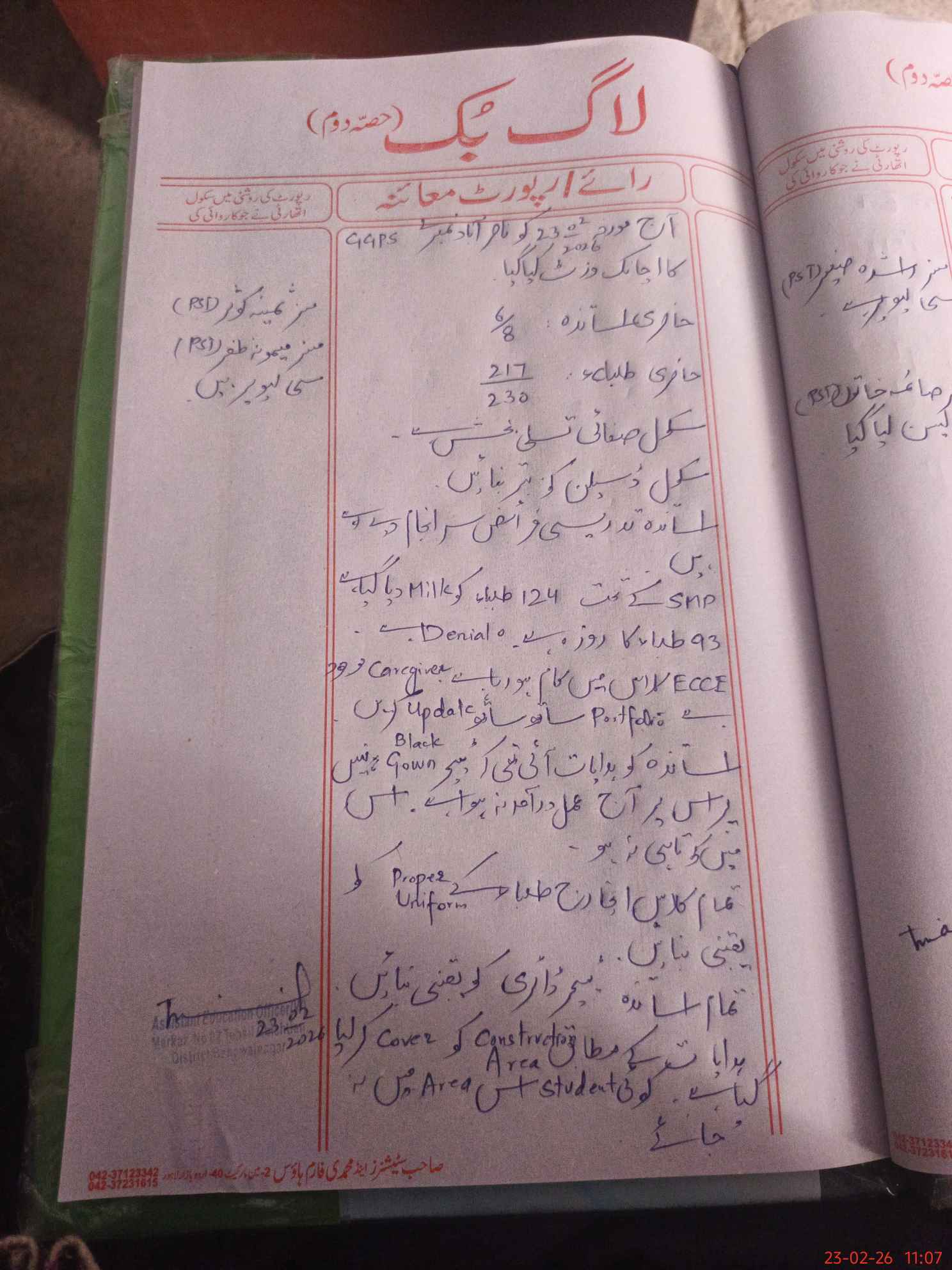 | EMIS Code: 31120595 | Name of School: GGPS NASIRABAD NO. 2 | |||