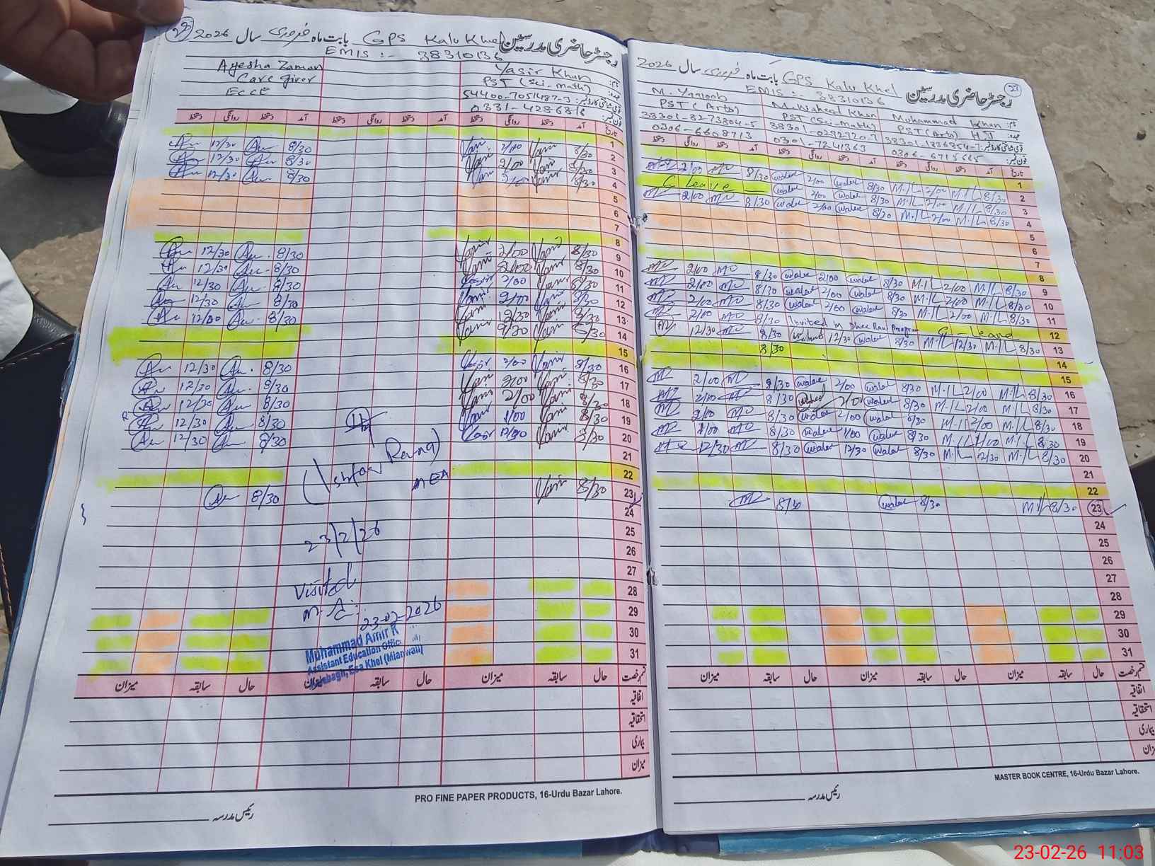 | Name: MU**** KH**** Designation: (School Headmaster's/Headmistress's) PST Phone/Cell Number: 03**** |
