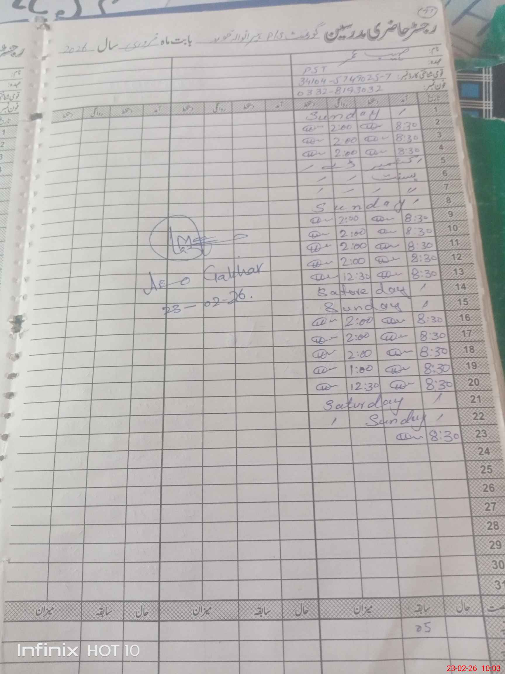 | EMIS Code: 34120146 | Name of School: GPS HARRIAN WALA KHURID | |||