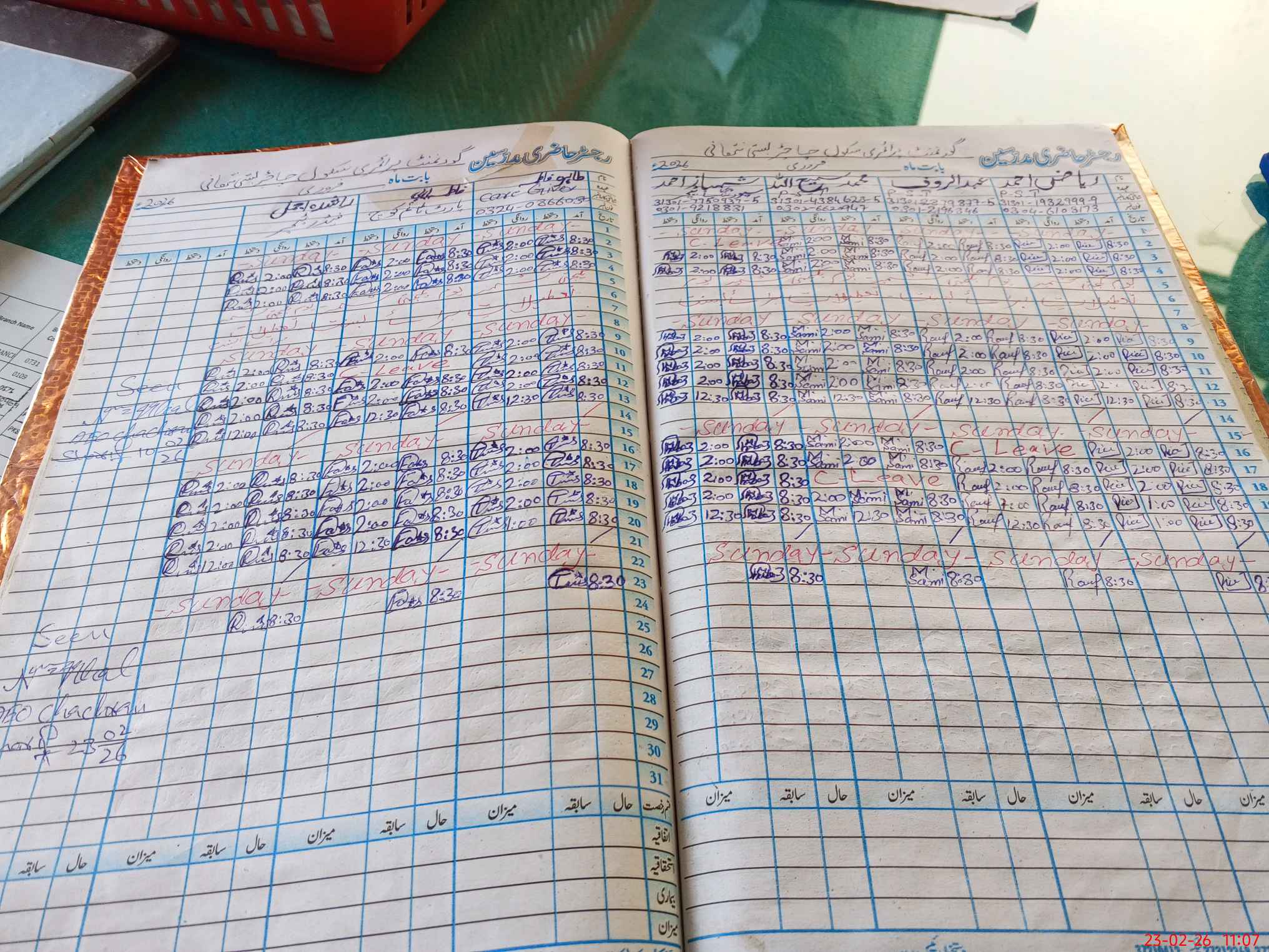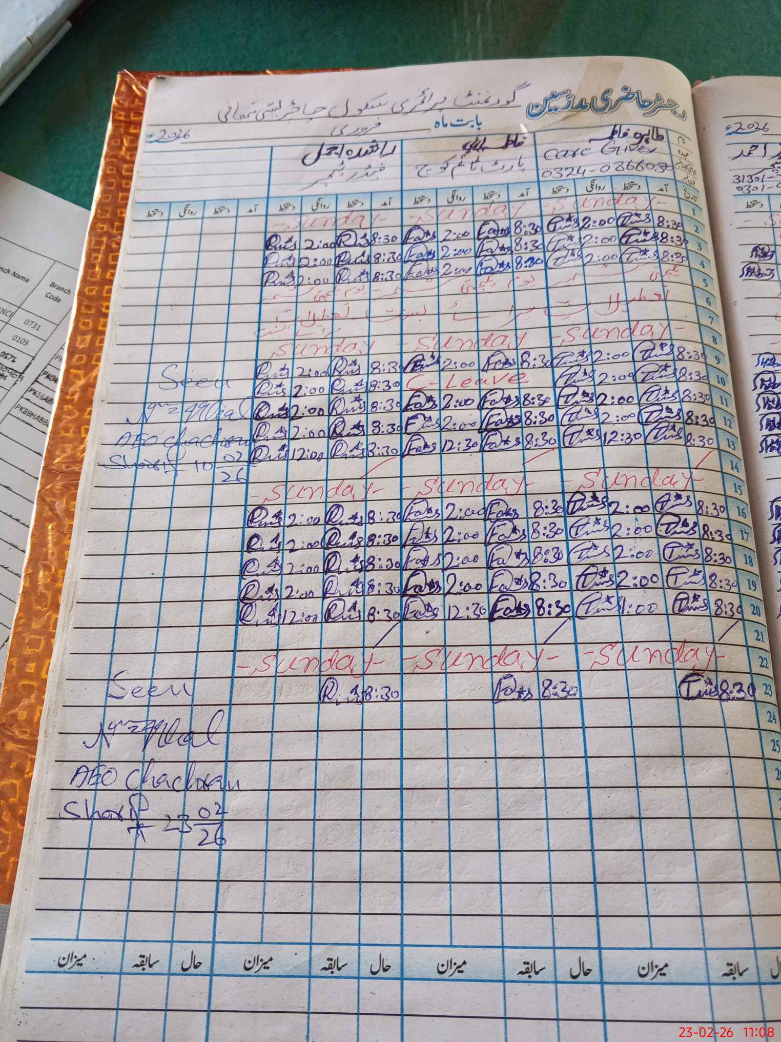 | CNIC | Full Name | Designation | R/C | Absence During Last Calender Month |