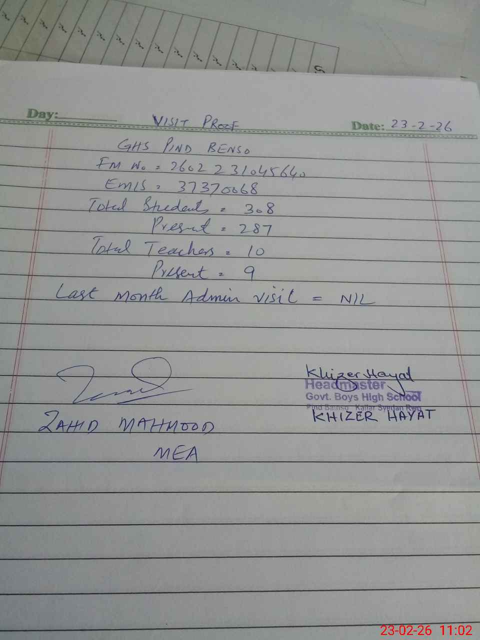| EMIS Code: 37370068 | Name of School: GHS PIND BENSO | |||