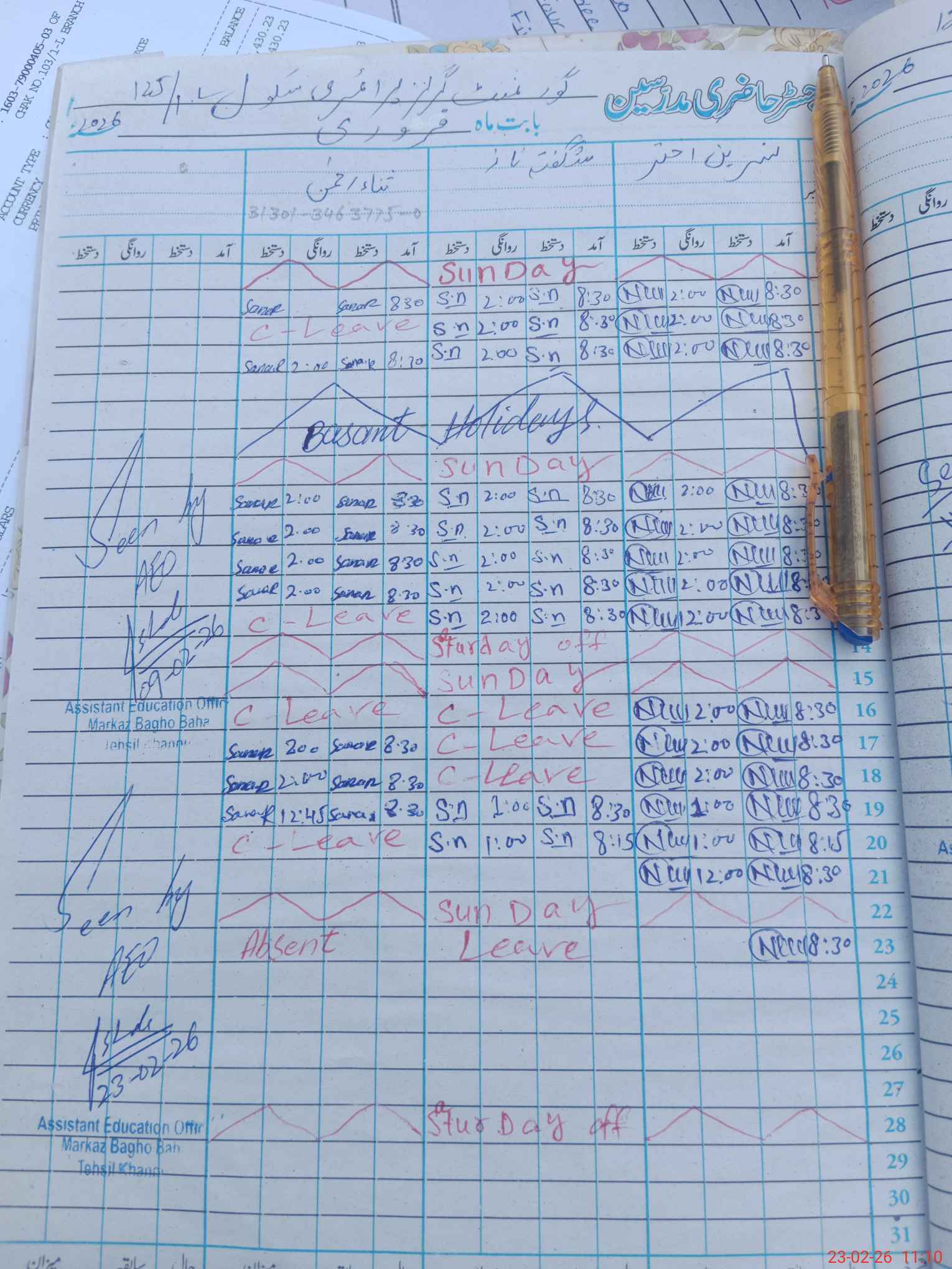 | Name: Na**** Ak**** Designation: (School Headmaster's/Headmistress's) PST Phone/Cell Number: 03**** |