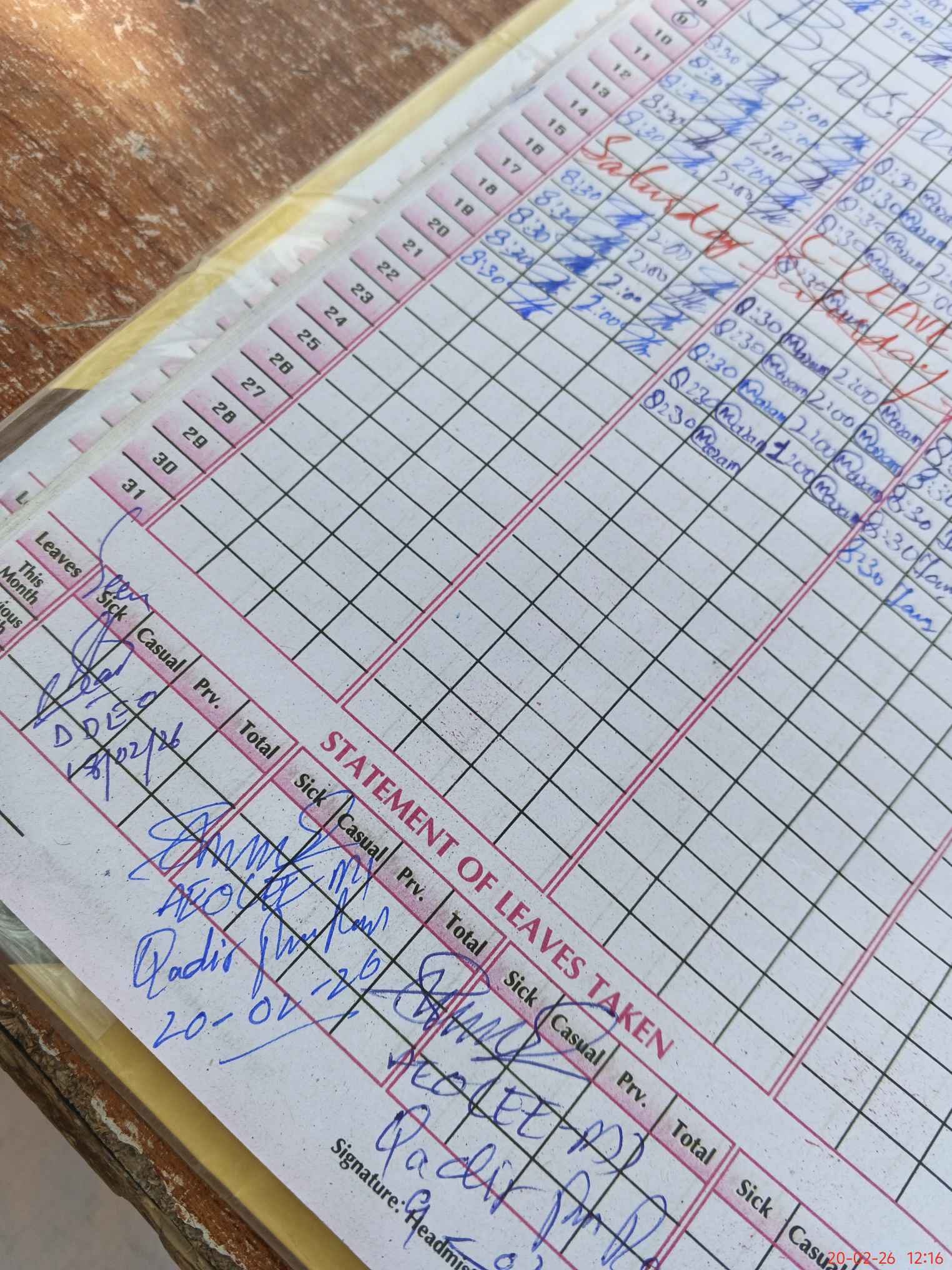 Leave Type | Remarks for Today (Leave,Training, Exam,Absent,Late, Other Duty) |
