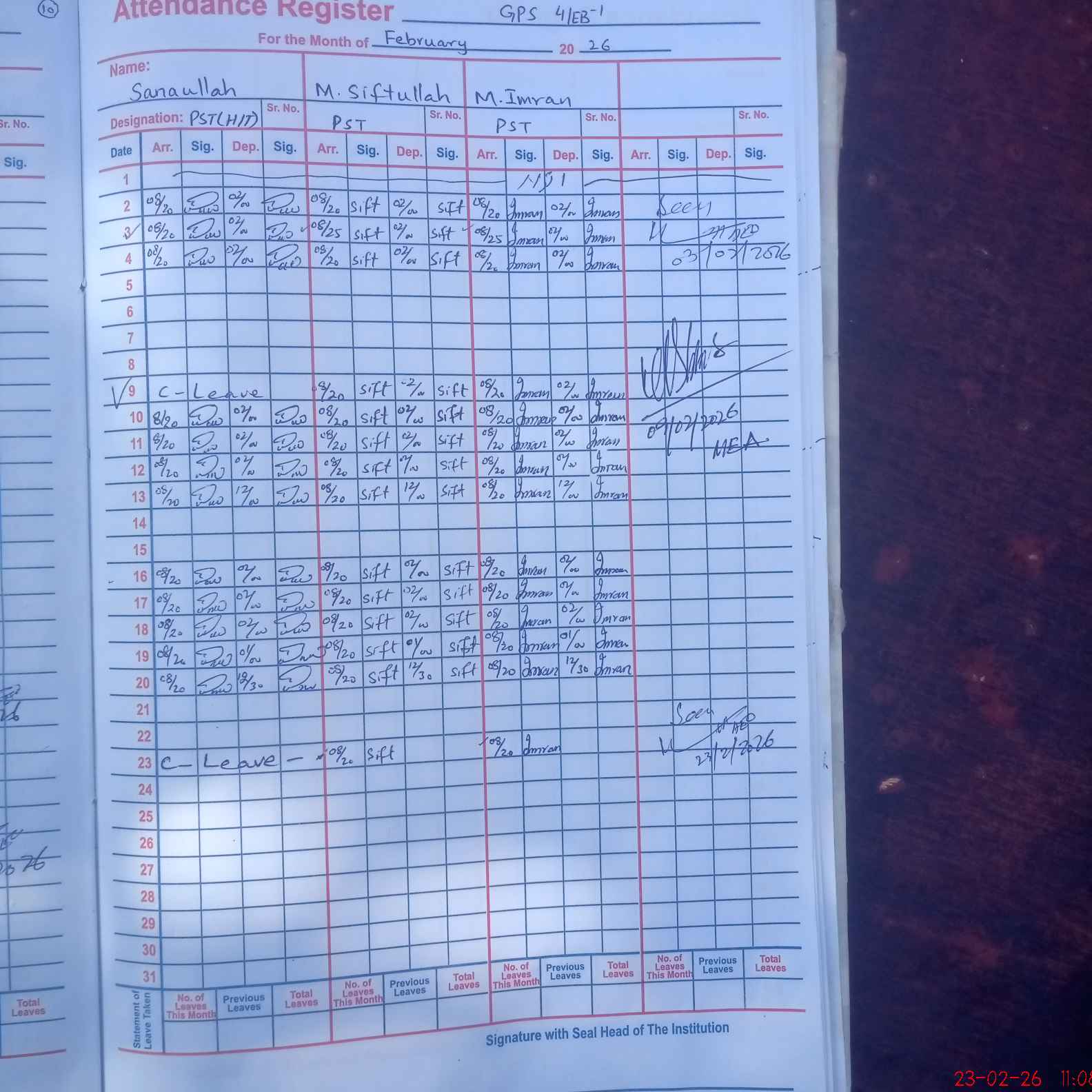 | 36**** | Sa**** | PST Arts | Regular | 0 | 0 | 0 | 0 | 0 | 0 | 0 | 0 | 0 | Casual |