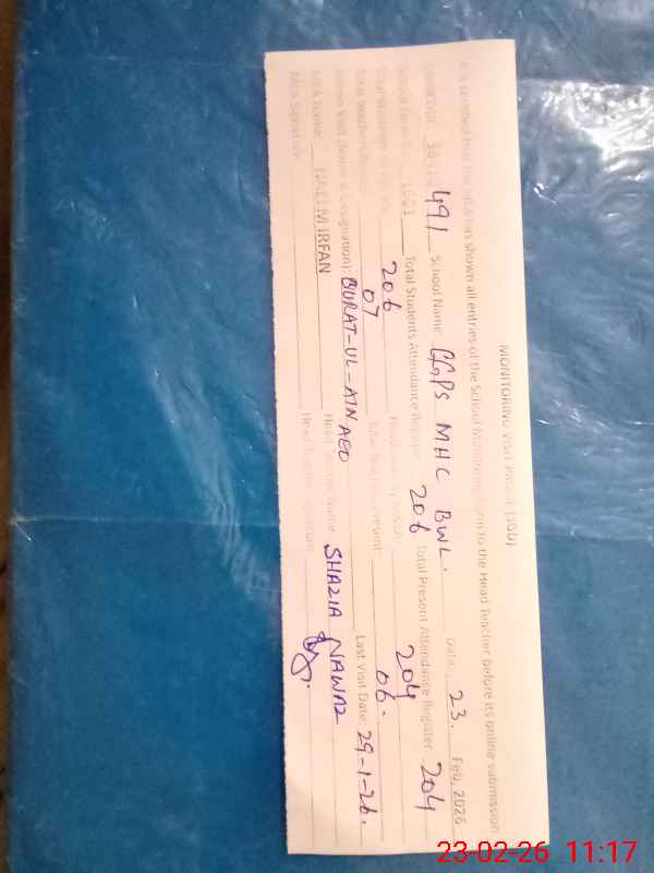| EMIS Code: 38410491 | Name of School: GGPS MANZOOR HAYAT COLONY BHALWAL | |||