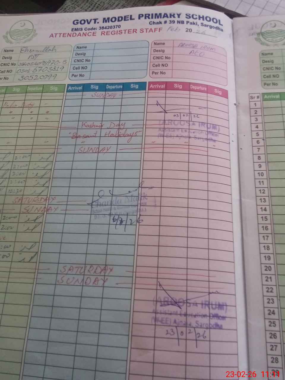 | District: SARGODHA | Tehsil: SARGODHA | Markaz: AJNALA - FEMALE | Level: Primary | |