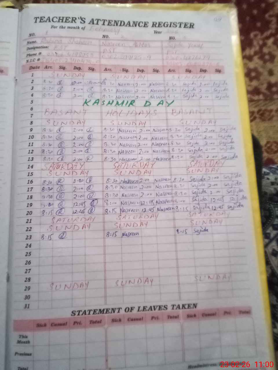 | Name: Ru**** Sh**** Designation: (School Headmaster's/Headmistress's) EST SCI Phone/Cell Number: 03**** |