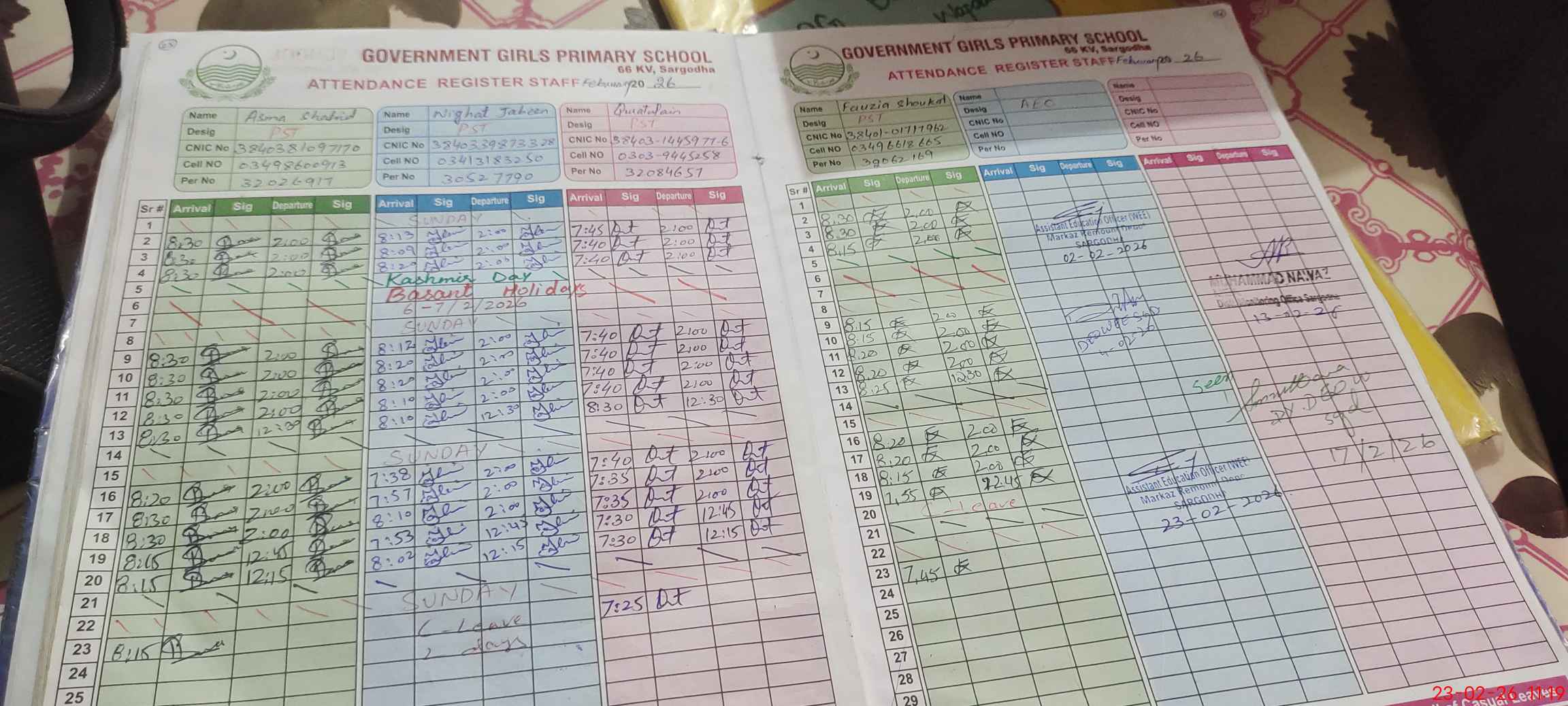 | Name: AS**** SH**** Designation: (School Headmaster's/Headmistress's) PST Phone/Cell Number: 03**** |