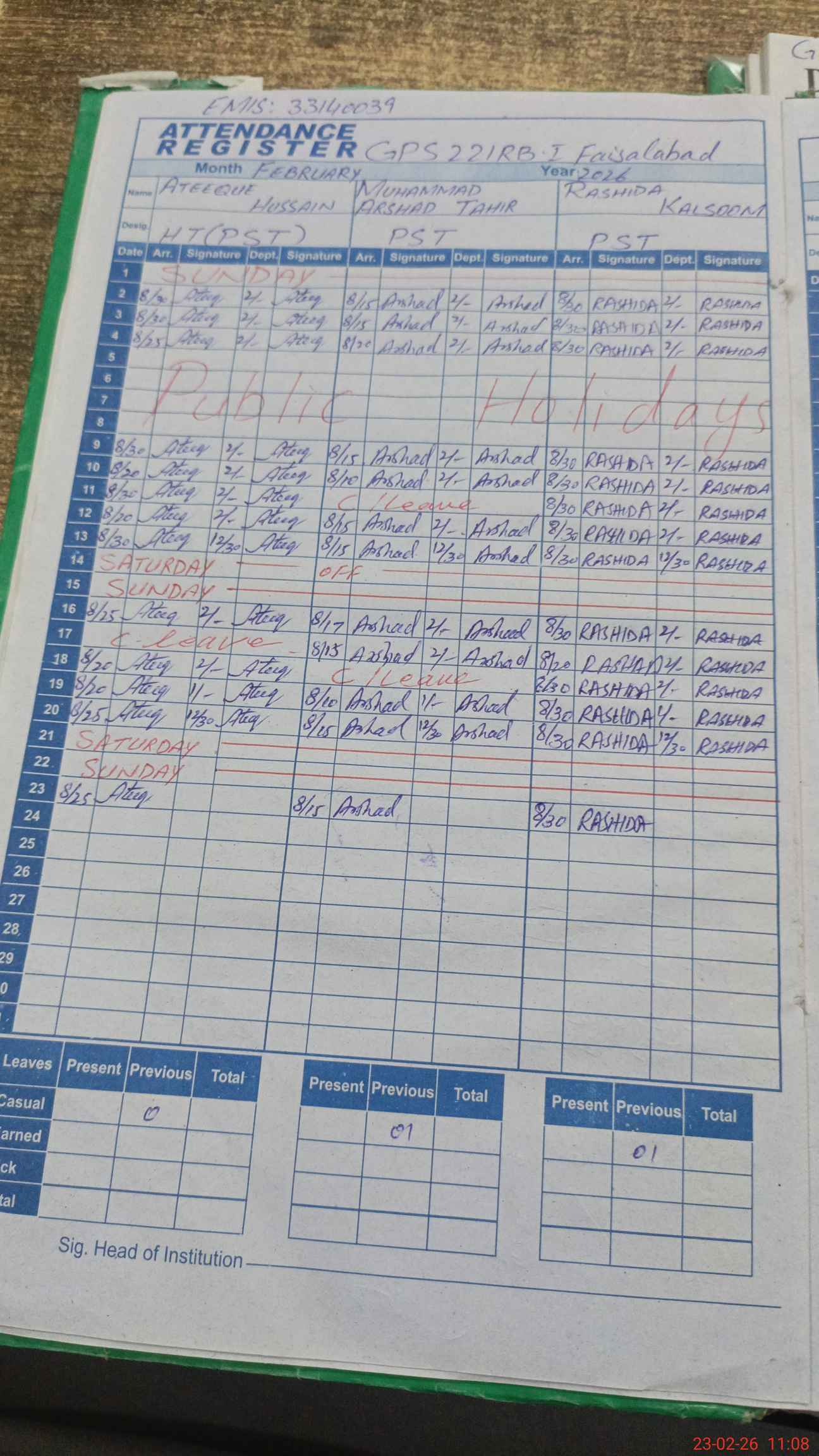 | Name: At**** Hu**** Designation: (School Headmaster's/Headmistress's) PST/PTC/JV Phone/Cell Number: 03**** |
