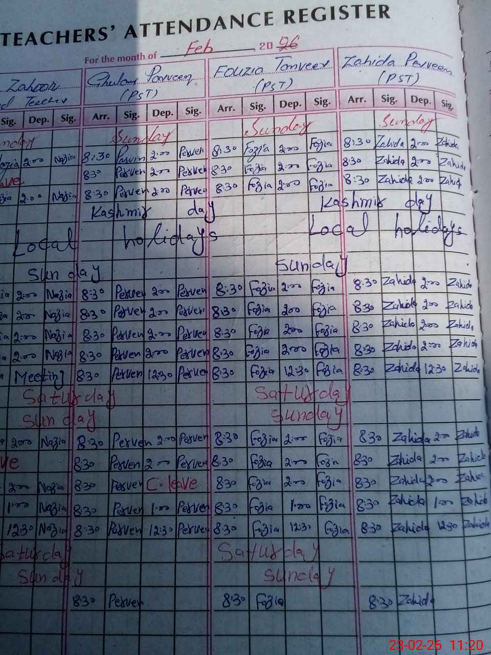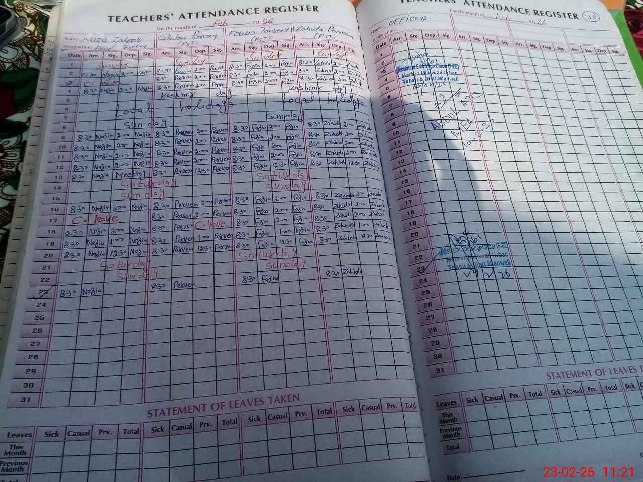 | Attendance Register | Head Teacher | MEA with School | Visit Proof |