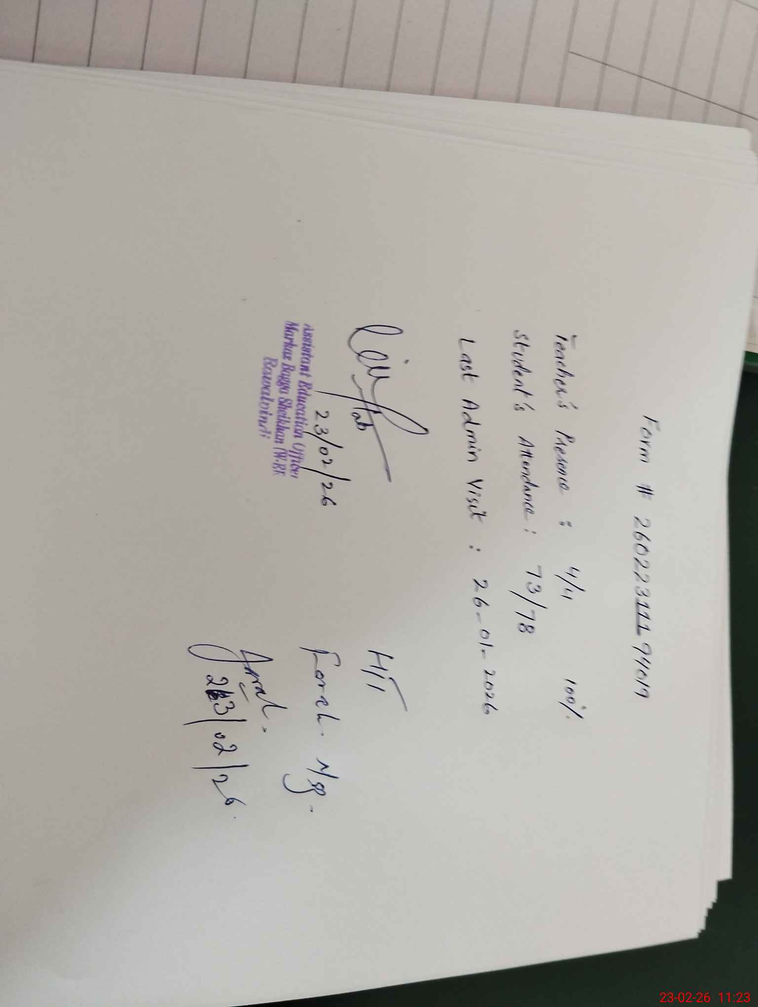 | Attendance Register | Head Teacher | MEA with School | Visit Proof |