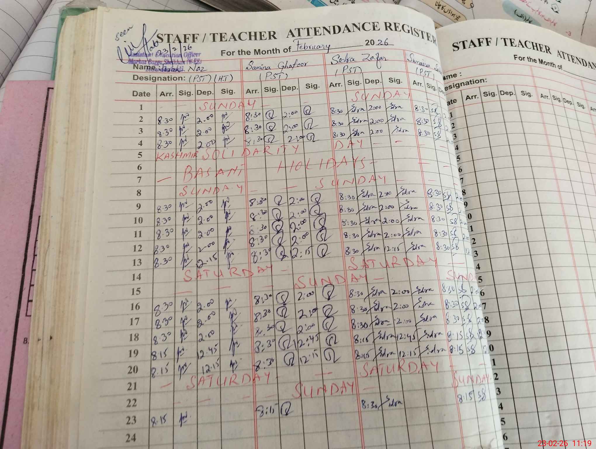 | Name: Fa**** Na**** Designation: (School Headmaster's/Headmistress's) PST Phone/Cell Number: 03**** |