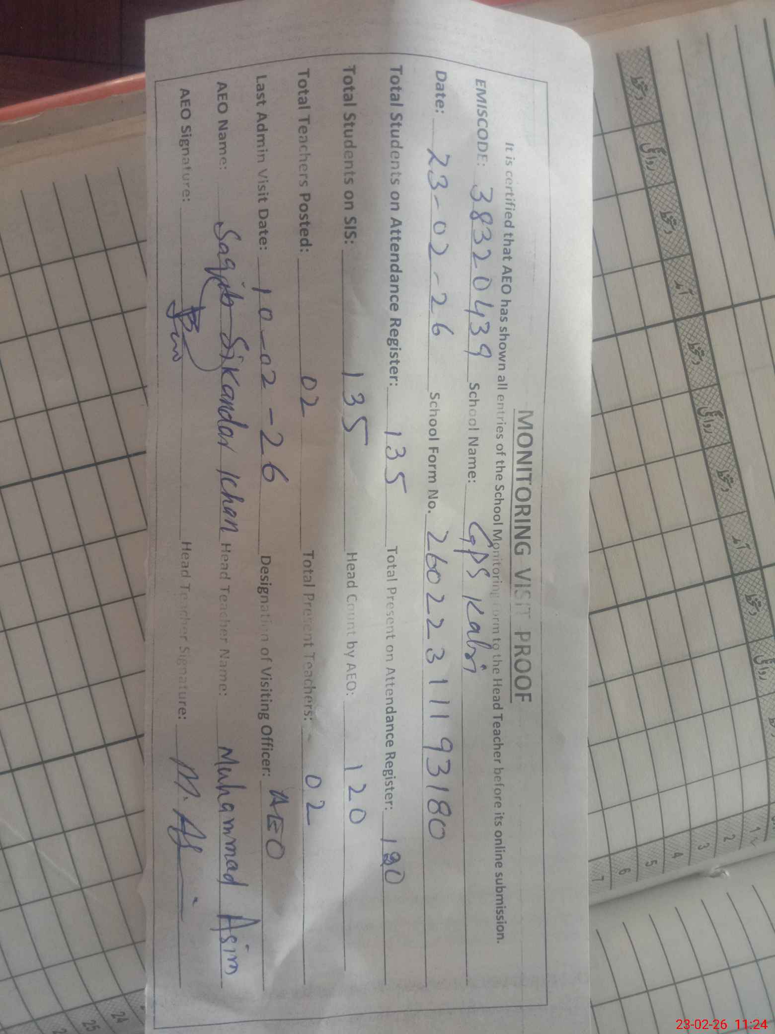 | EMIS Code: 38320439 | Name of School: GPS KALRI | |||