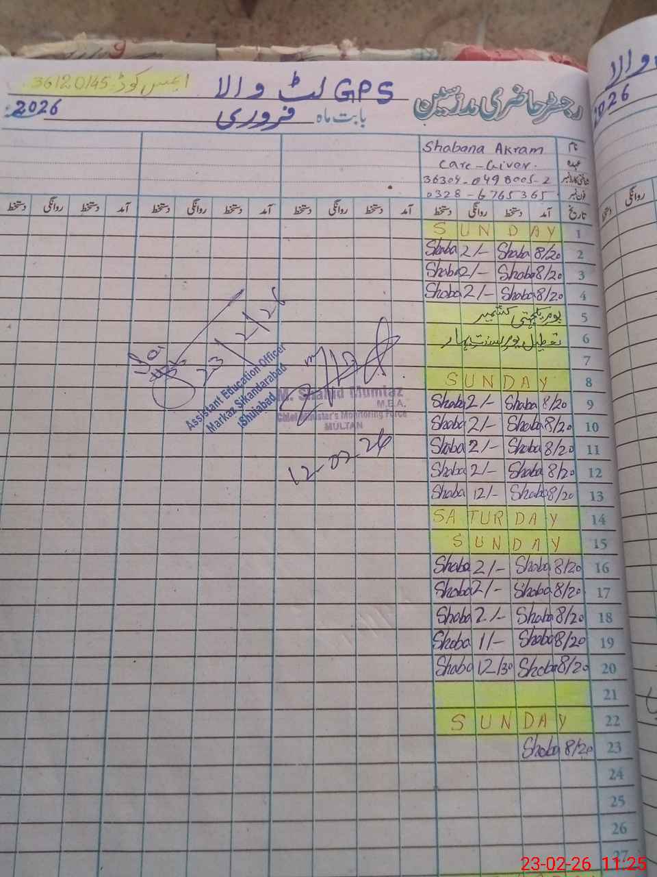 | EMIS Code: 36120145 | Name of School: GPS LUT WALA P/O KHOJA SHUJABAD | |||