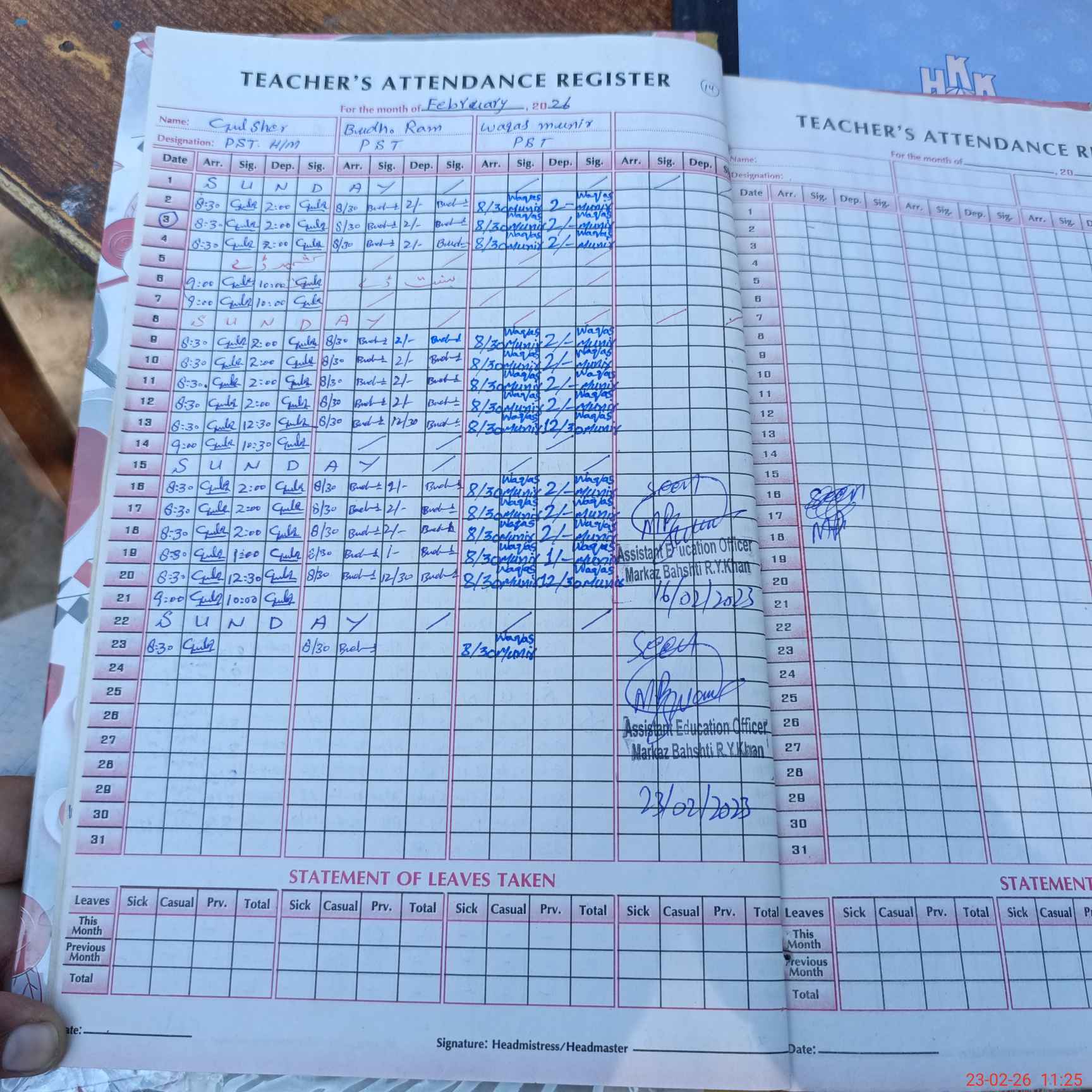 | Attendance Register | Head Teacher | MEA with School | Visit Proof |