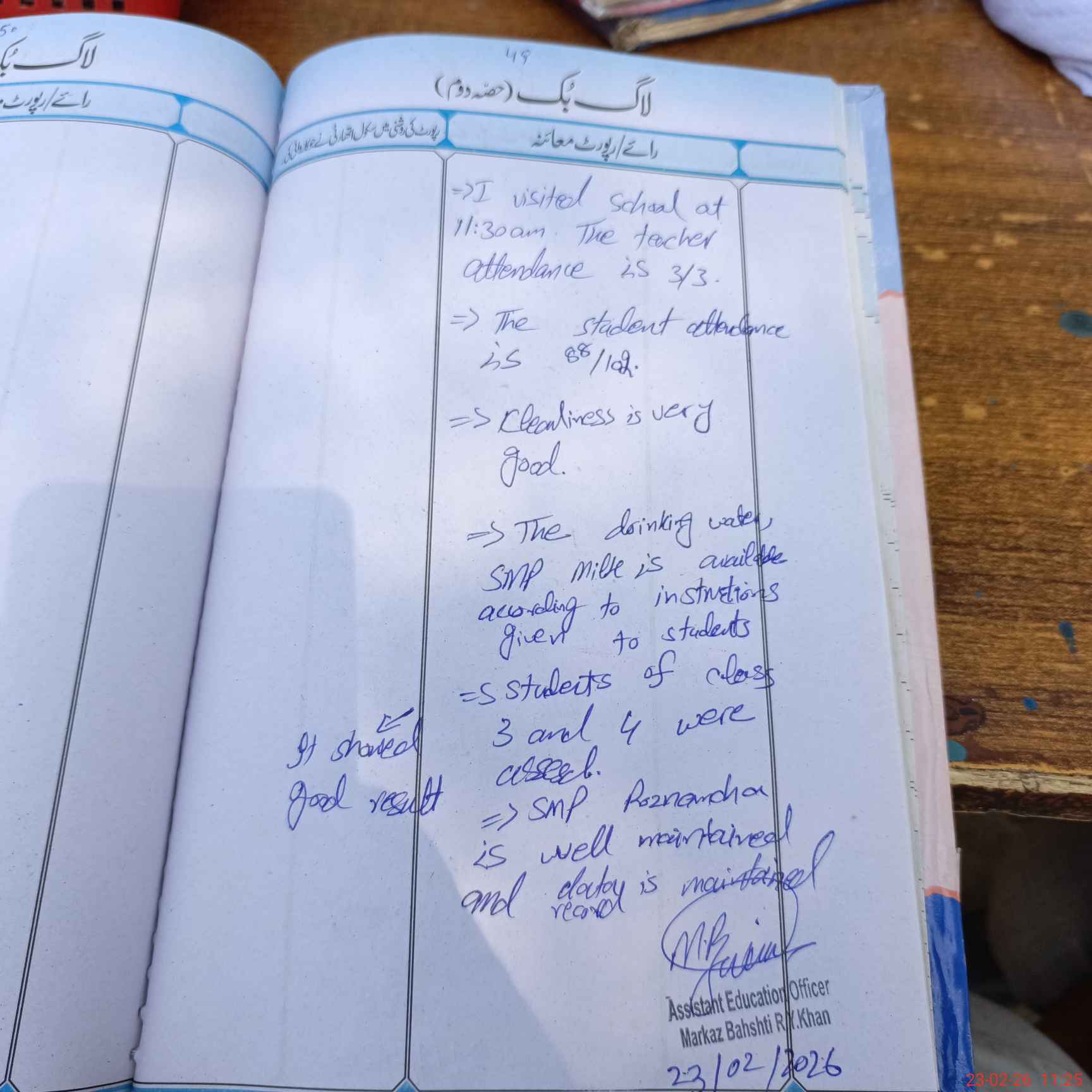 | Certified that this School was Inspected by the Undersigned MEA/DMO Today and the Information Stated Above is as Per Record. | |||||