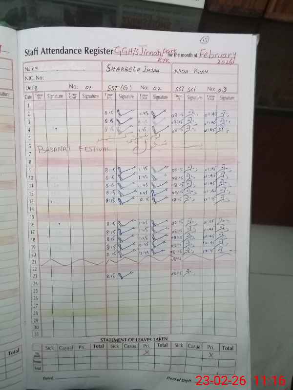 | EMIS Code: 31330123 | Name of School: GGHS JINNAH PARK R.Y. KHAN | |||