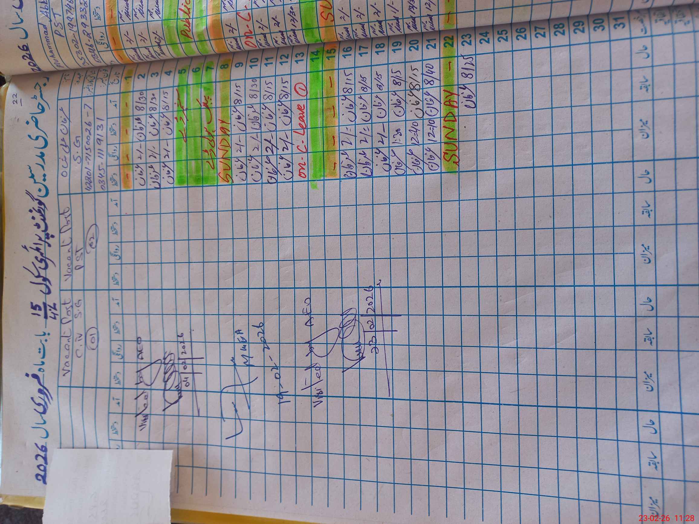 | CNIC | Full Name | Designation | R/C | Absence During Last Calender Month |