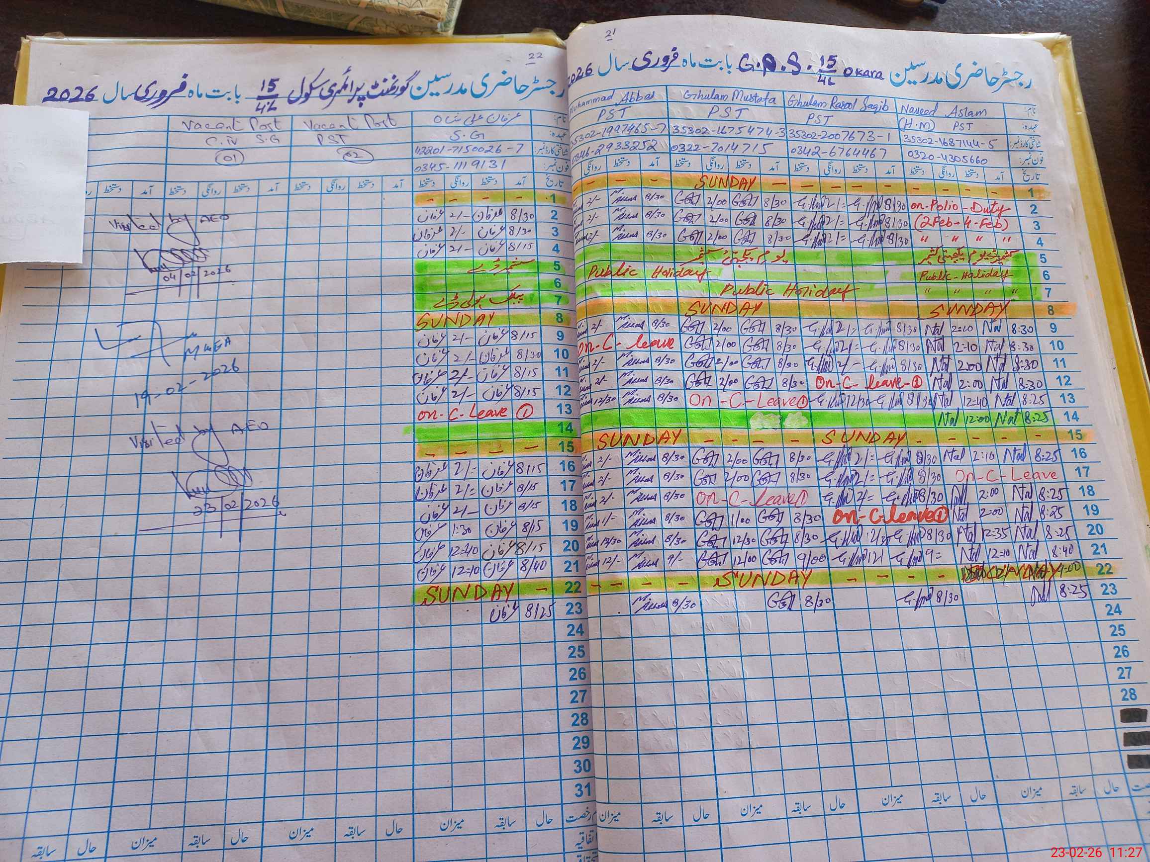 | Attendance Register | Head Teacher | MEA with School | Visit Proof |