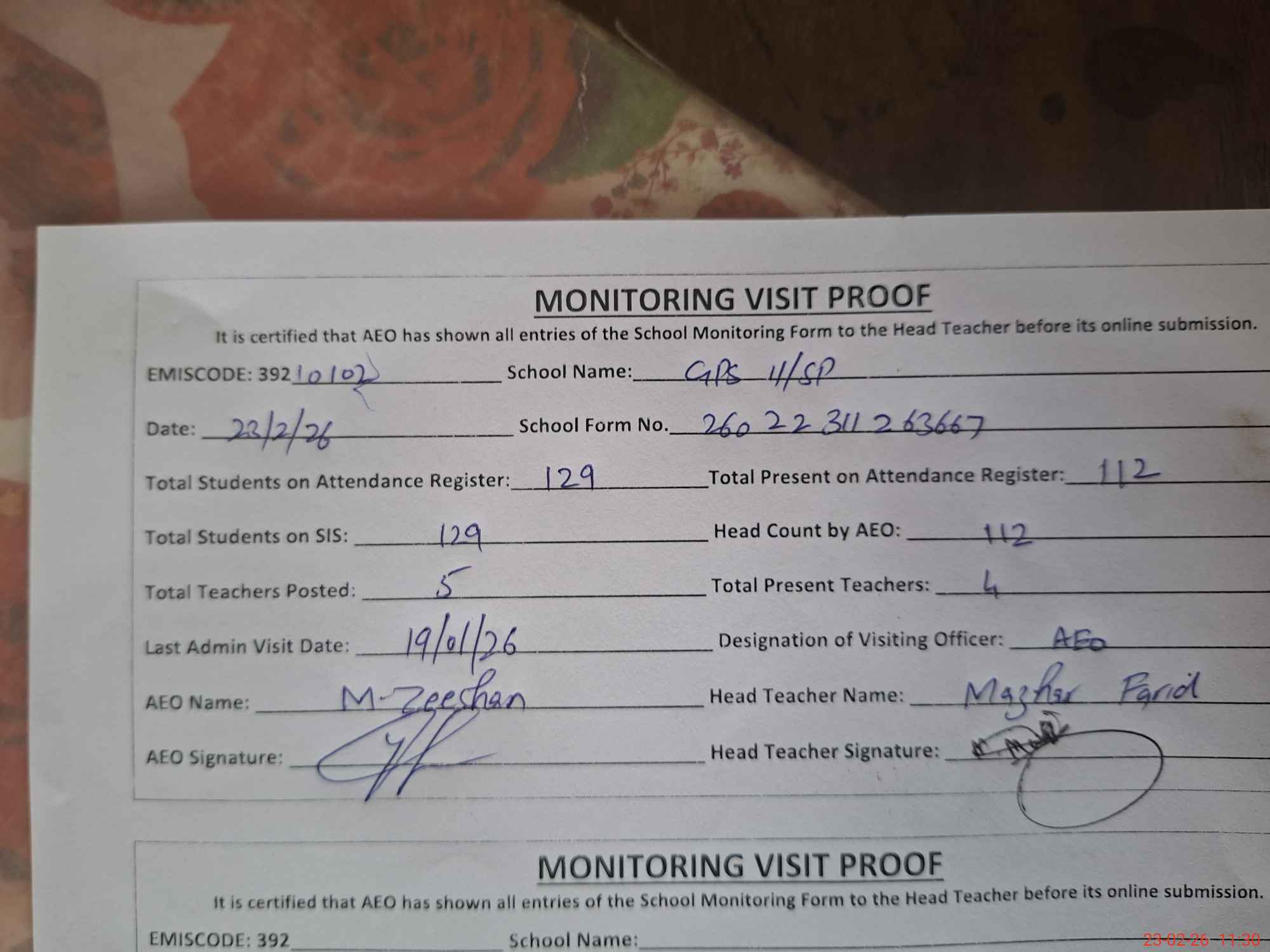 | EMIS Code: 39210102 | Name of School: GPS 11/SP P.O 8/S.P PAKPATTAN | |||