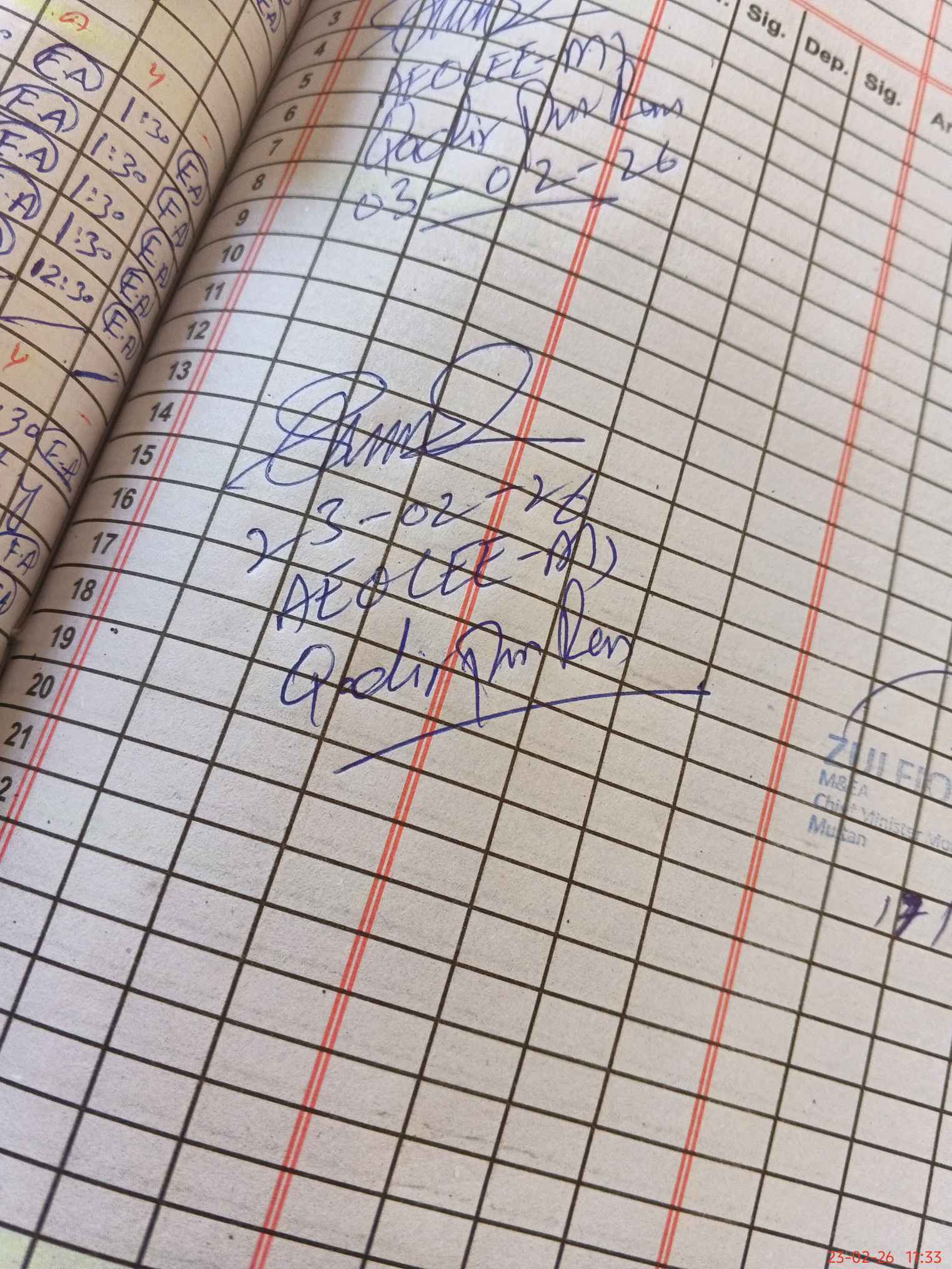 | CNIC | Full Name | Designation | R/C | Absence during last cal. month |