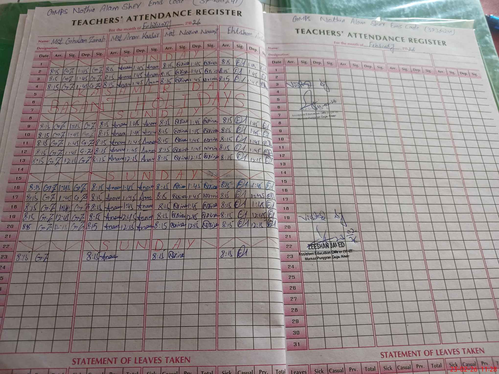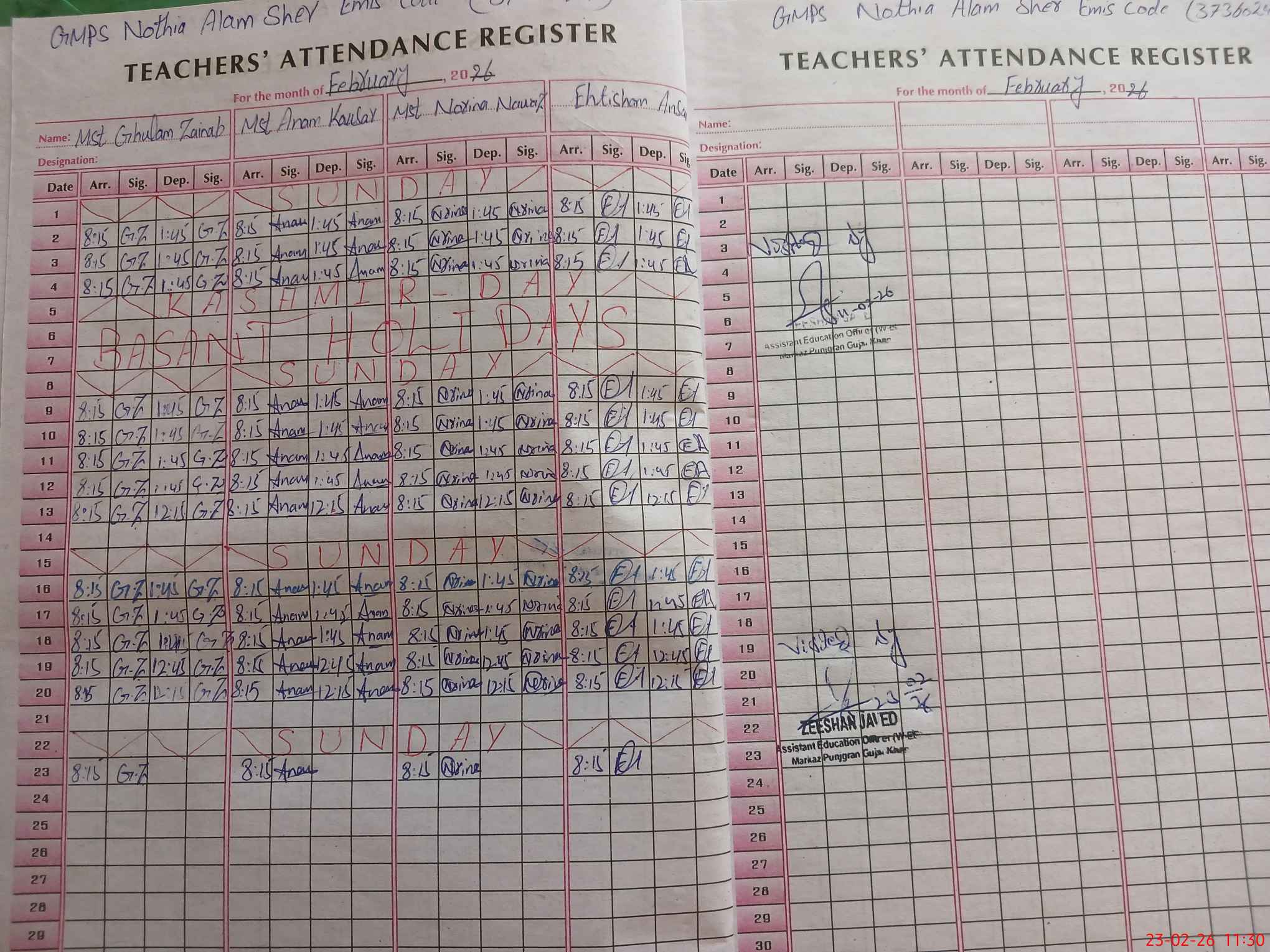 | EMIS Code: 37360241 | Name of School: GMPS NOTHIA ALAM SHER | |||