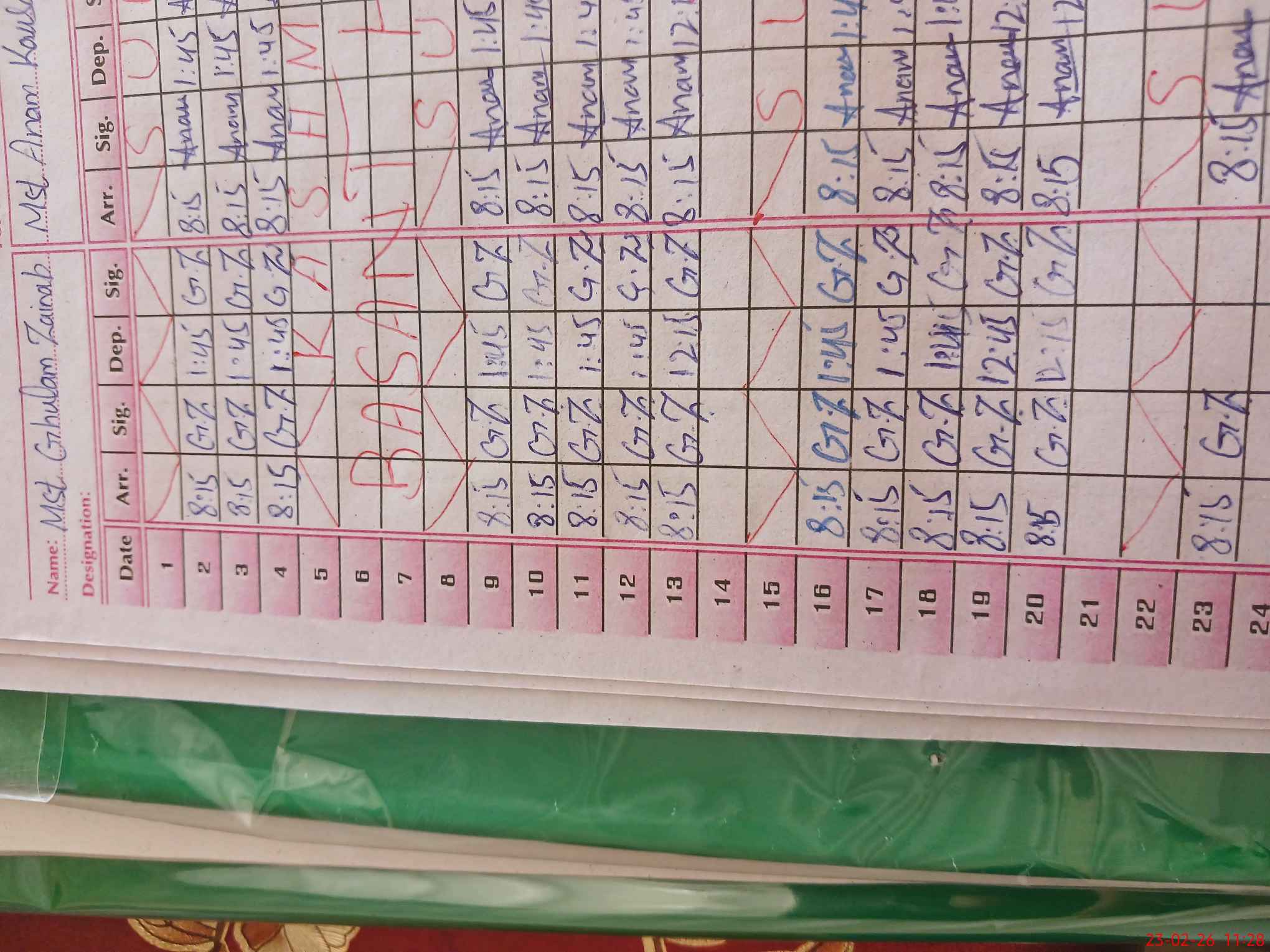 | CNIC | Full Name | Designation | R/C | Absence During Last Calender Month |