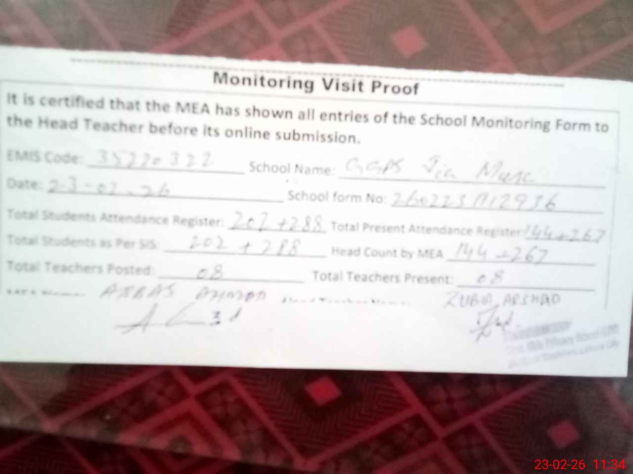 | EMIS Code: 35220322 | Name of School: GGPS JIA MUSA SHAHDRA | |||