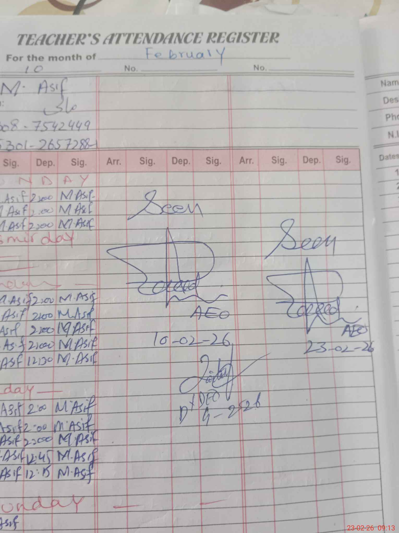 | Name: Fo**** Designation: (School Headmaster's/Headmistress's) SST ARTS Phone/Cell Number: 03**** |