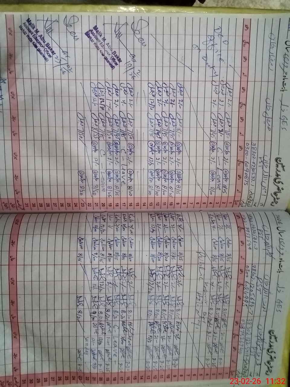 | CNIC | Full Name | Designation | R/C | Absence During Last Calender Month |