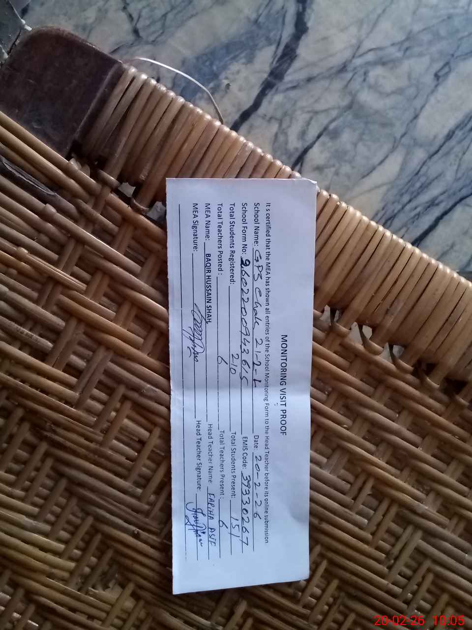 | EMIS Code: 39330267 | Name of School: GPS CHAK 21 2L | |||