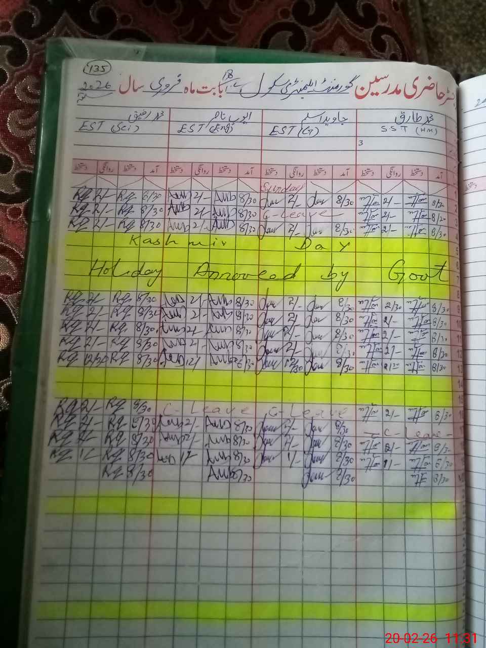 | 35**** | Ab**** Ra**** | EST General Arts | Regular | 0 | 0 | 0 | 0 | 0 | 0 | 0 | 0 | 0 | Casual |