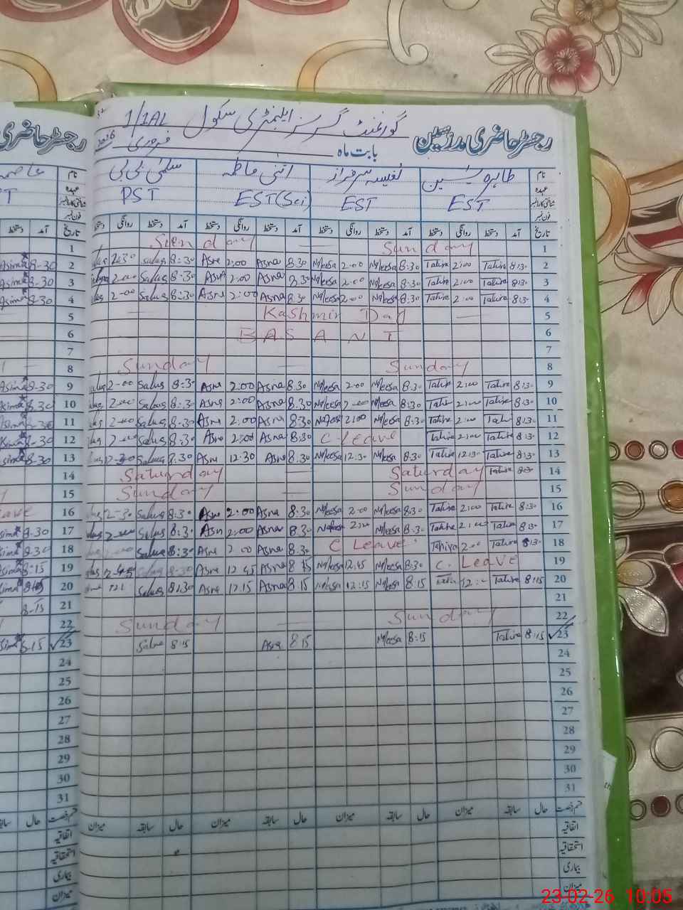 | Attendance Register | Head Teacher | MEA with School | Visit Proof |
