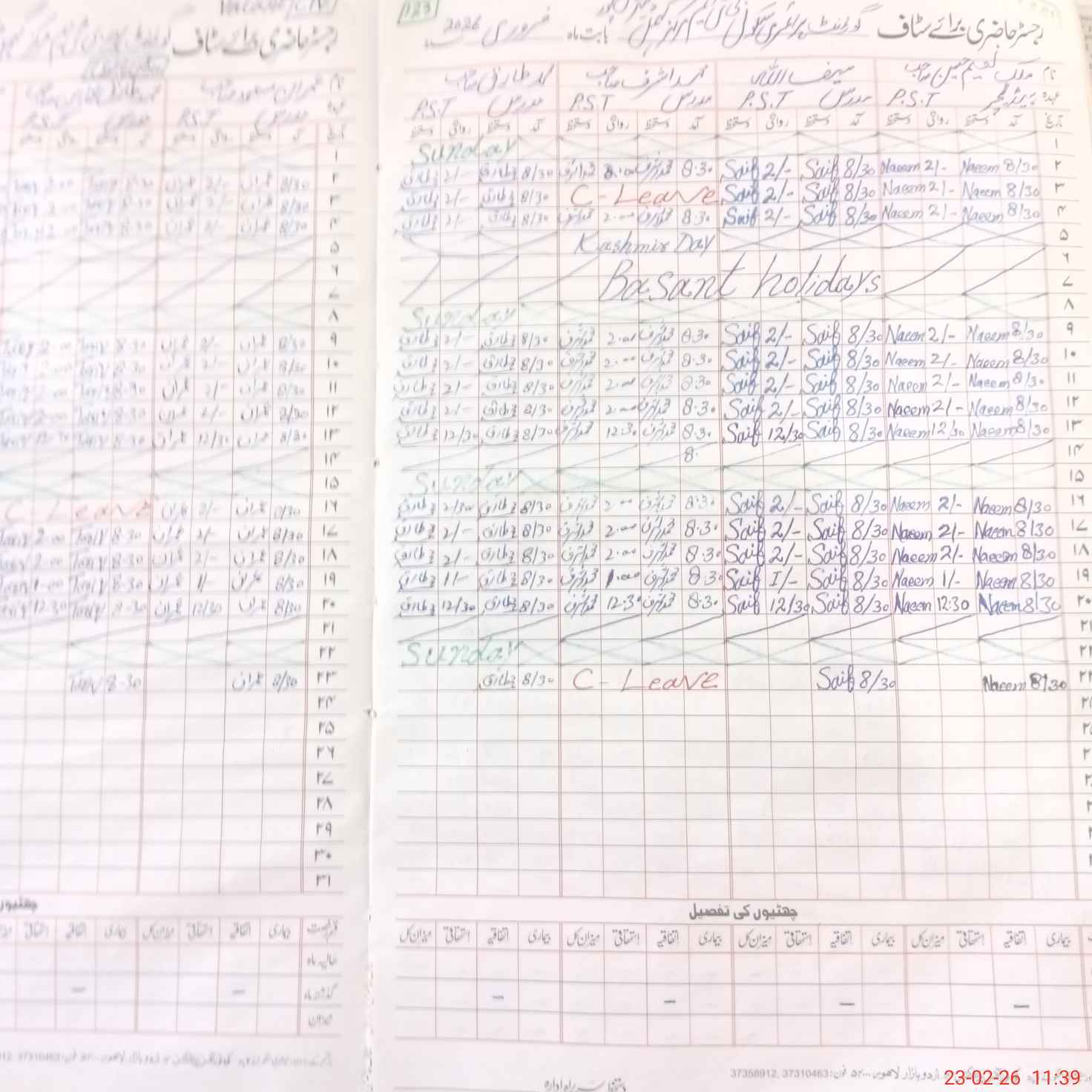 | CNIC | Full Name | Designation | R/C | Absence During Last Calender Month |