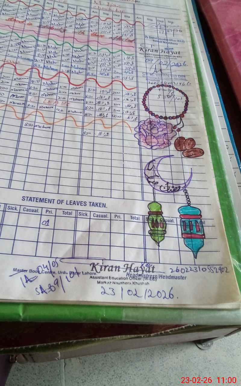 | District: KHUSHAB | Tehsil: NAUSHERA | Markaz: NOUSHERA (FEMALE) | Level: Primary | |