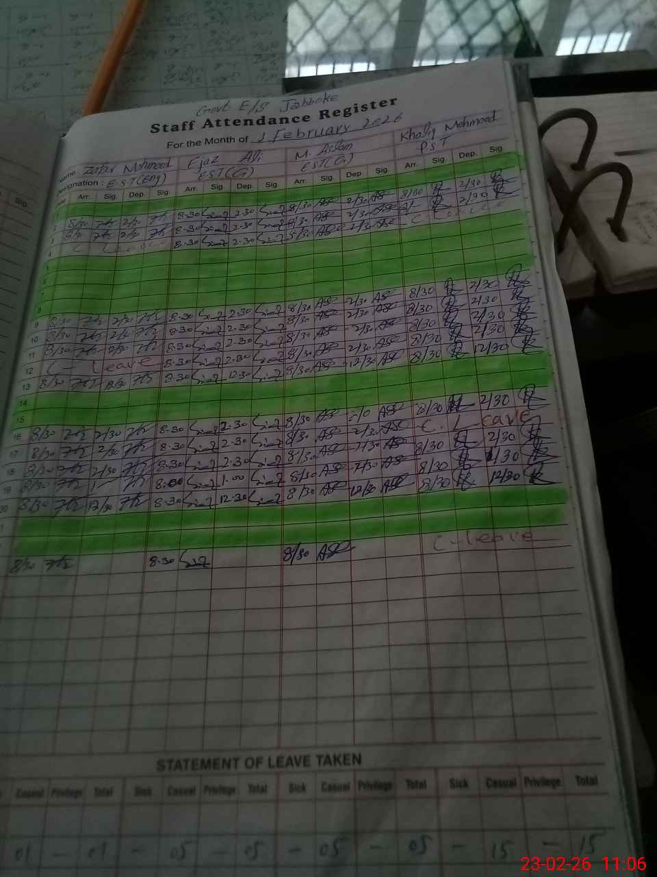 | CNIC | Full Name | Designation | R/C | Absence During Last Calender Month |
