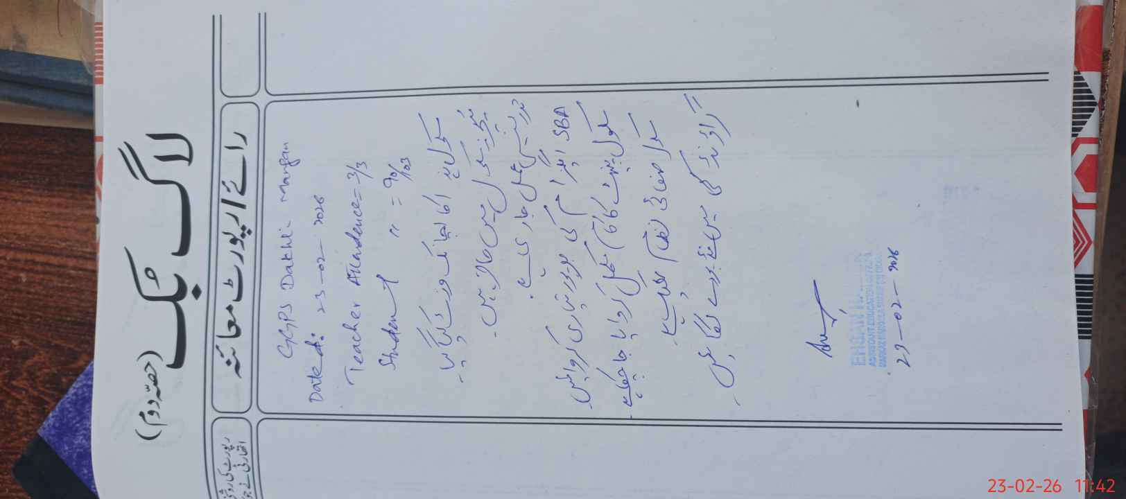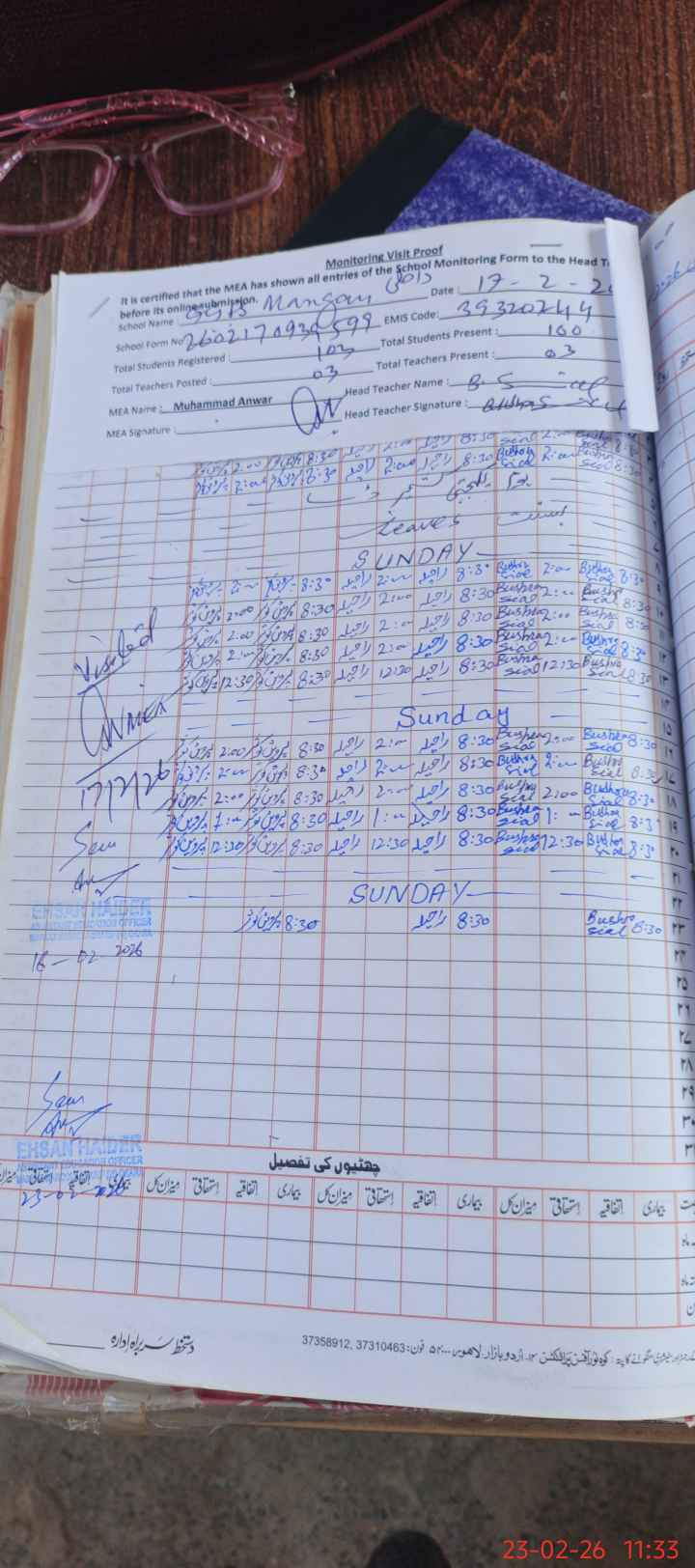 | Attendance Register | Head Teacher | MEA with School | Visit Proof |