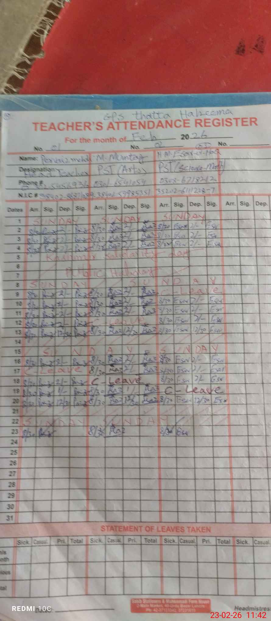 | Name: Ra**** Pe**** Me**** Designation: (School Headmaster's/Headmistress's) PST Science Phone/Cell Number: 03**** |