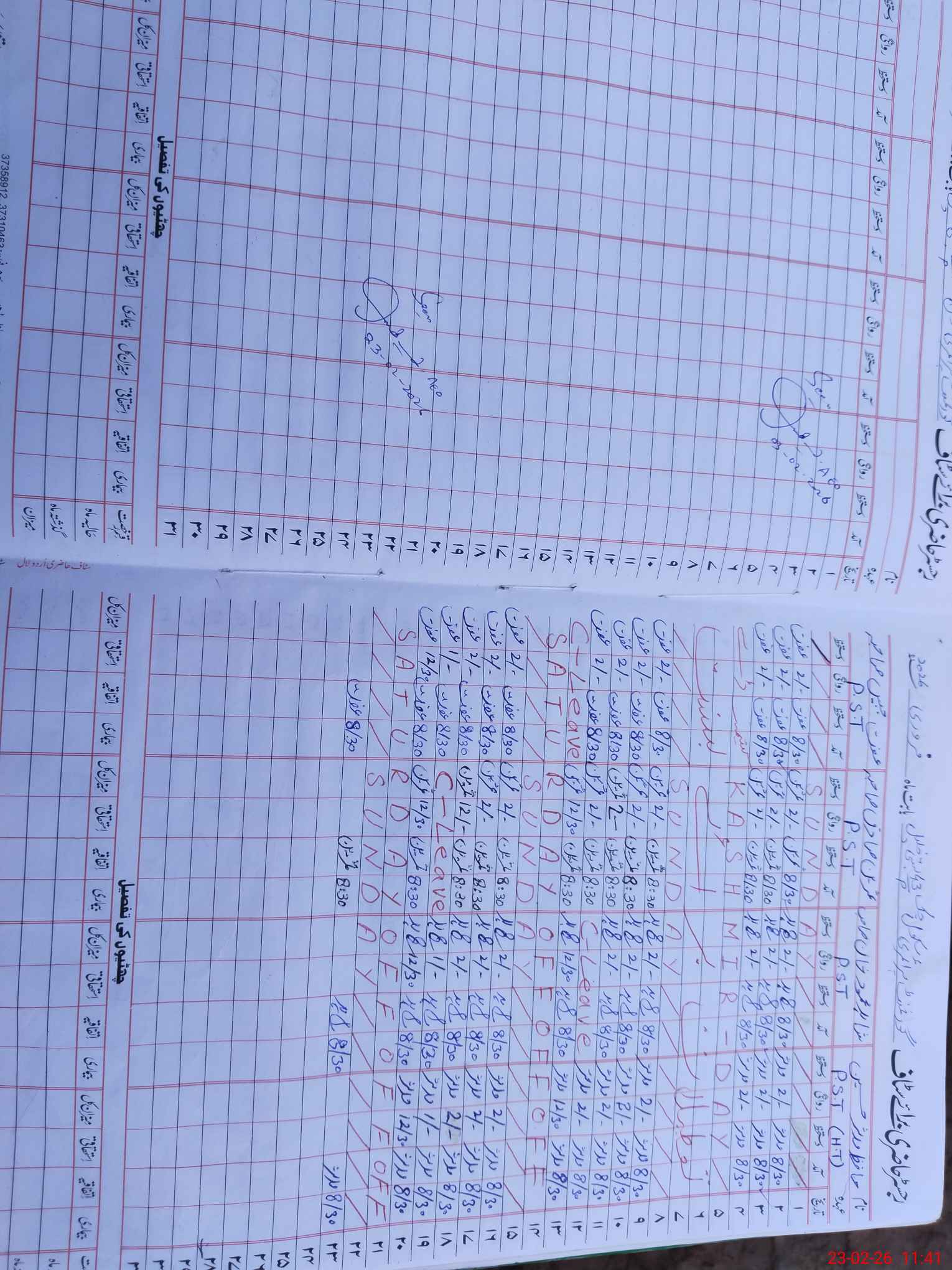 | CNIC | Full Name | Designation | R/C | Absence During Last Calender Month |