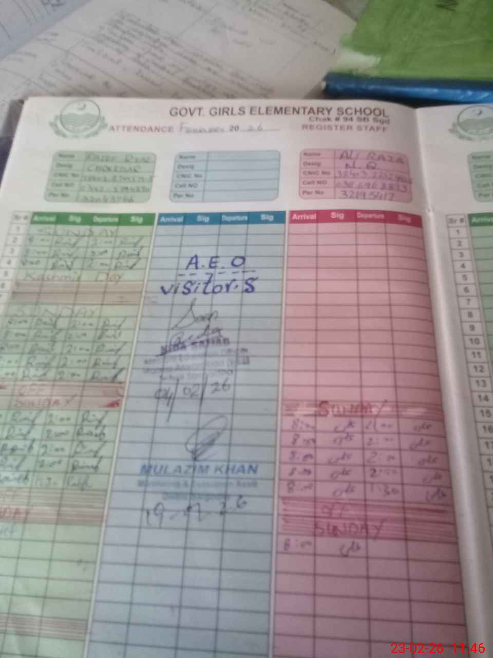 | Attendance Register | Head Teacher | MEA with School | Visit Proof |