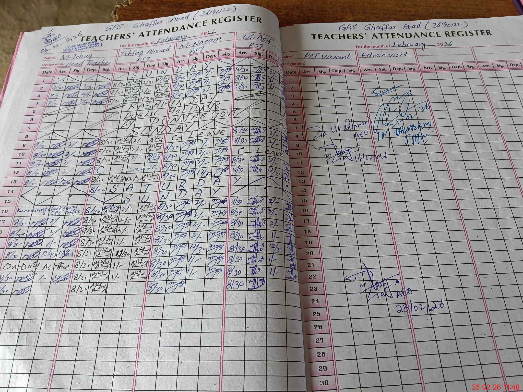 | Attendance Register | Head Teacher | MEA with School | Visit Proof |