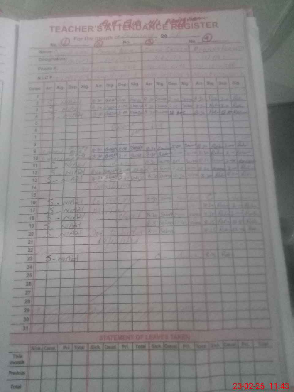 | 38**** | Sh**** Ka**** | PST Science/Maths | Regular | 0 | 0 | 0 | 0 | 0 | 0 | 0 | 0 | 0 | Casual |