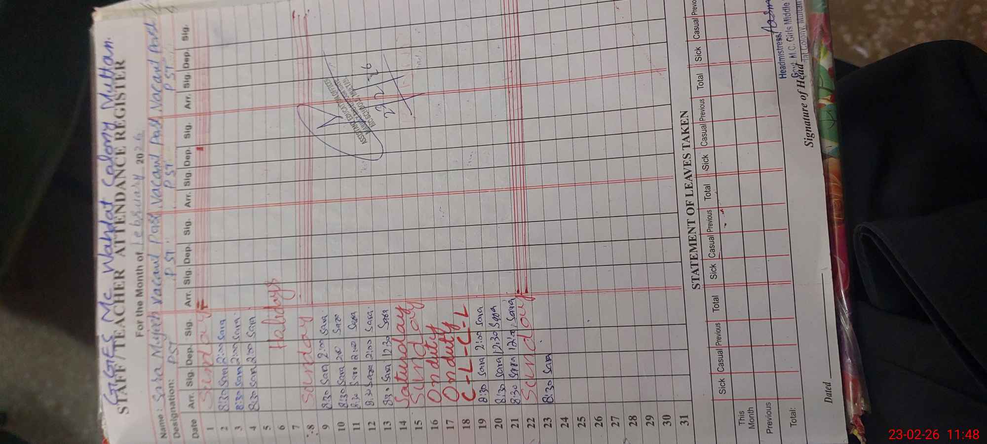 | Leave | Duty | Absent | Maternity | Medical | Ex- Pak |