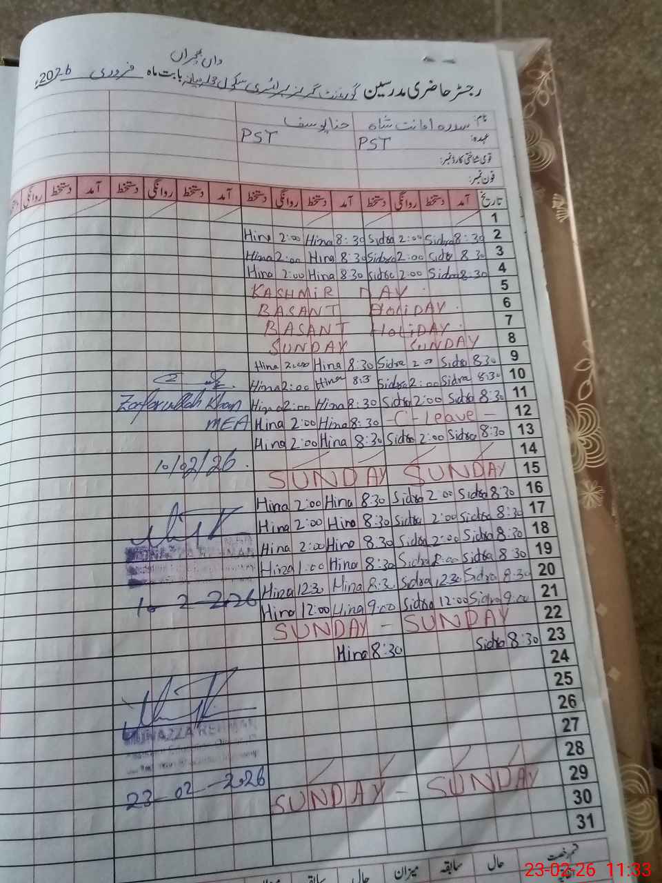 | Name: Um**** Ba**** Designation: (School Headmaster's/Headmistress's) PST Phone/Cell Number: 03**** |